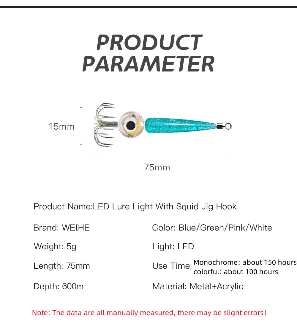 Señuelos de pesca 5g 7,5 cm anzuelo de calamar con luz LED plantilla de calamar señuelo calamar luminoso Webfoot pulpo Egi cebo sepia aparejos de mar