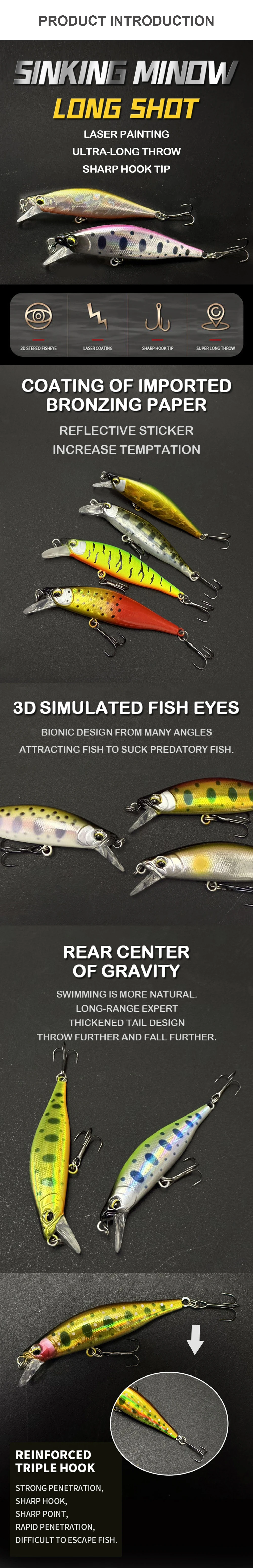3. Los cebos tienen una pintura realista y ojos 3D vívidos, hacen que el cebo parezca peces reales nadando en el agua durante la pesca.