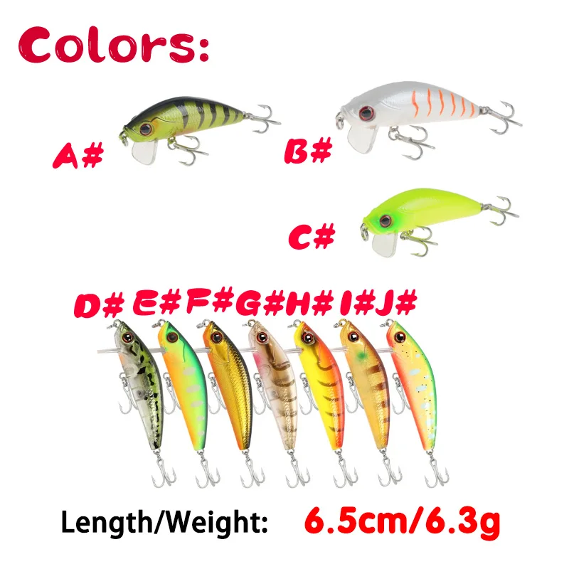 Modelo caliente Señuelos de Pesca Cebo duro 10 colores para elegir Minnow 6,5 cm 6,3G Calidad profesional Minnow Depth0.8-1,5 m Pesca Tackle Perch Rocking Tail Spinner