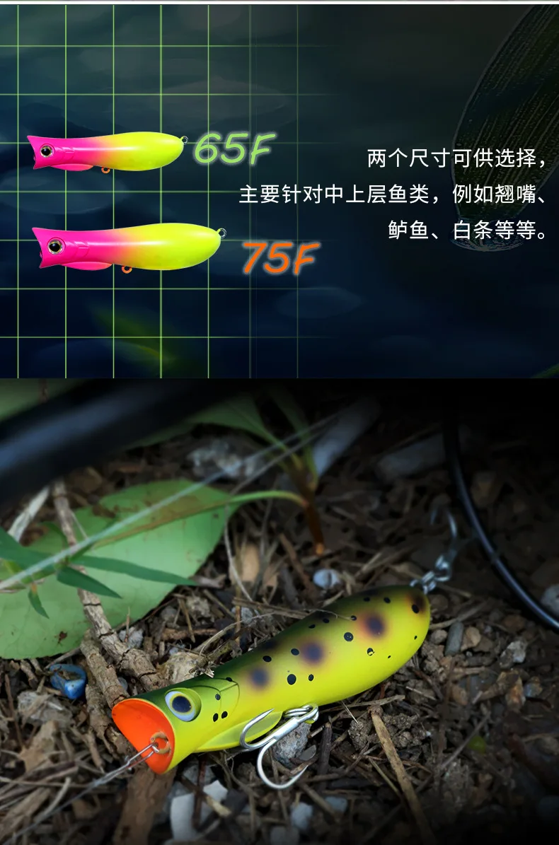 Señuelos de pesca 65mm/75mm Topwater Popper cebo duro señuelo Artificial Wobblers diseño 3D 2 anzuelos afilados pez grande
