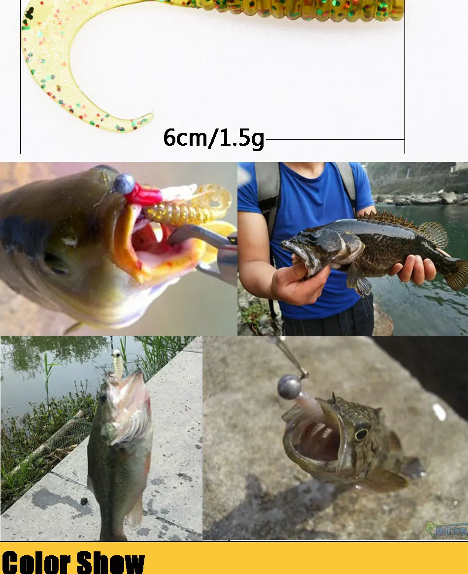 Señuelos de pesca de 6cm, 100 Uds., venta al por mayor, aparejos de pesca de mar, señuelo suave de proteína, cebo jerk, gusano, plantilla de pez, wobblers, señuelo de goma, poste gratis