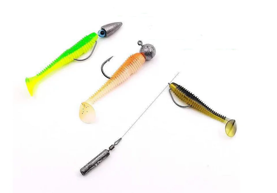 Señuelos de pesca 6cm 7cm 8cm cabeza de plantilla Señuelos blandos artificiales carpa de agua dulce Wobblers cebo de silicona lubina marina Swimbait Tackle invierno