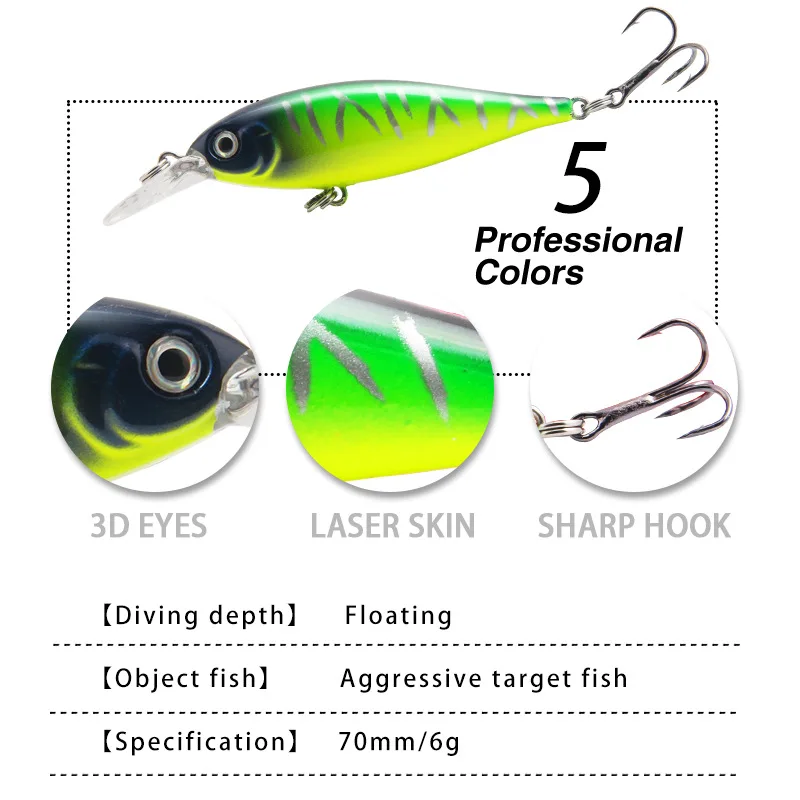 Señuelos de Pesca de 7cm y 6g, cebo duro de plástico Artificial para trucha, Crankbait, aparejos de pesca de lubina, 1 unidad