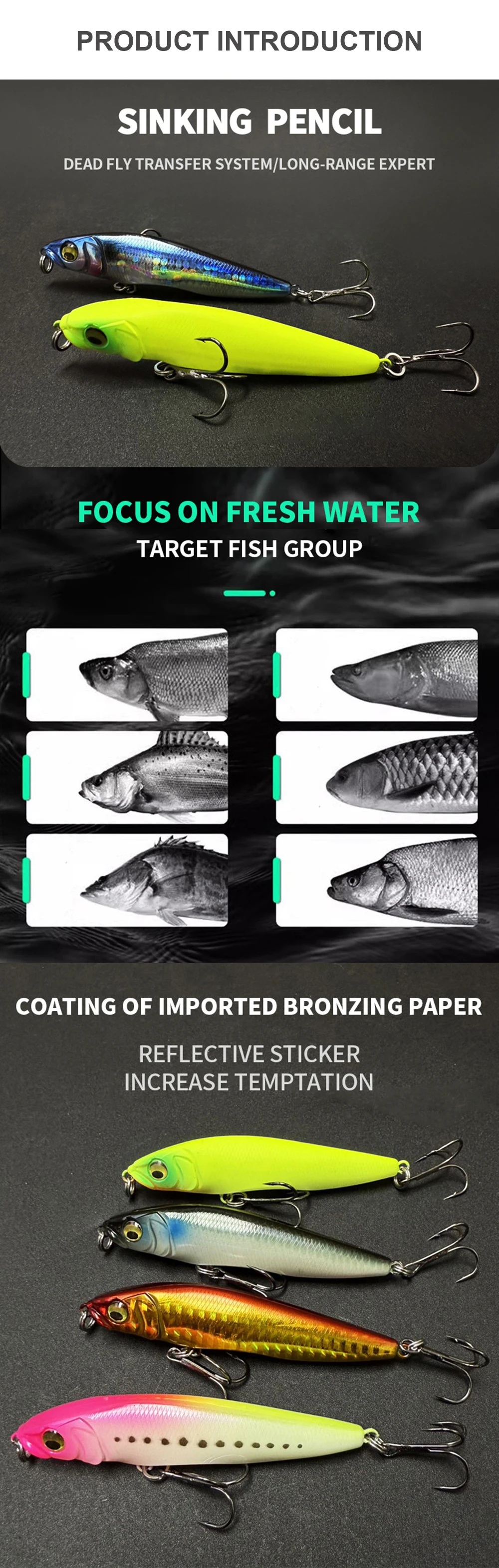 8.Piel de pez de simulación (laser): el diseño de la piel de pez de simulación la hace más atractiva para los peces grandes.