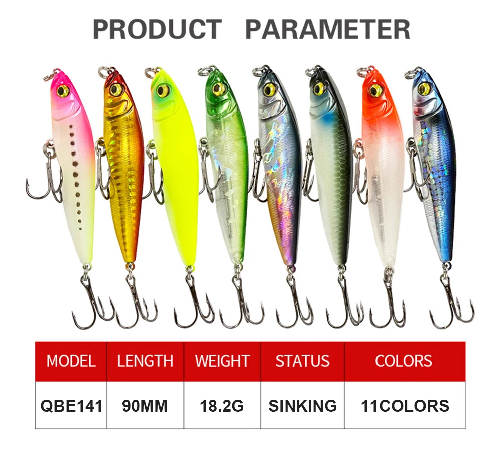 Señuelos de pesca de 9cm, 18.2g, cebo afundador de lápiz, Wobbler, cebo duro Artificial de fundición larga, Jerkbait, trucha, aparejos de pesca de lubina QBE141