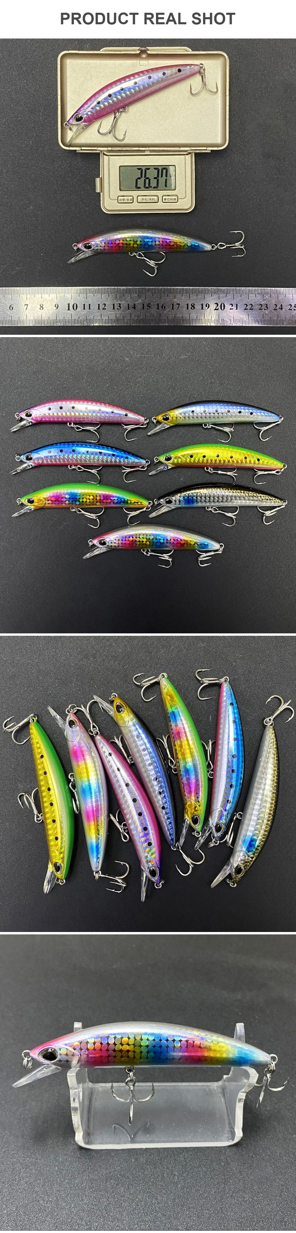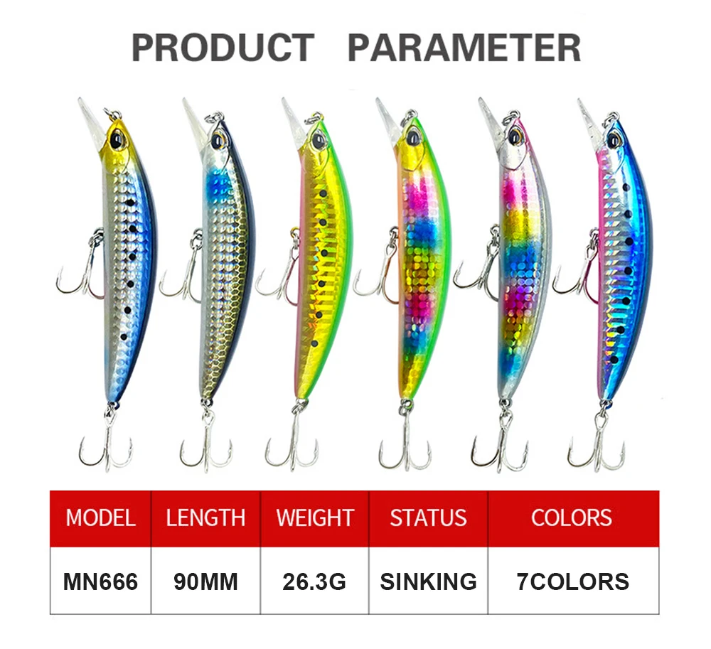 Señuelos de pesca de 9cm y 26,3g que se hunden Minnow Wobbler, cebo duro Artificial de fundición larga, Jerkbait, cebo pesado para pesca en agua de mar, cebo para lubina MN666