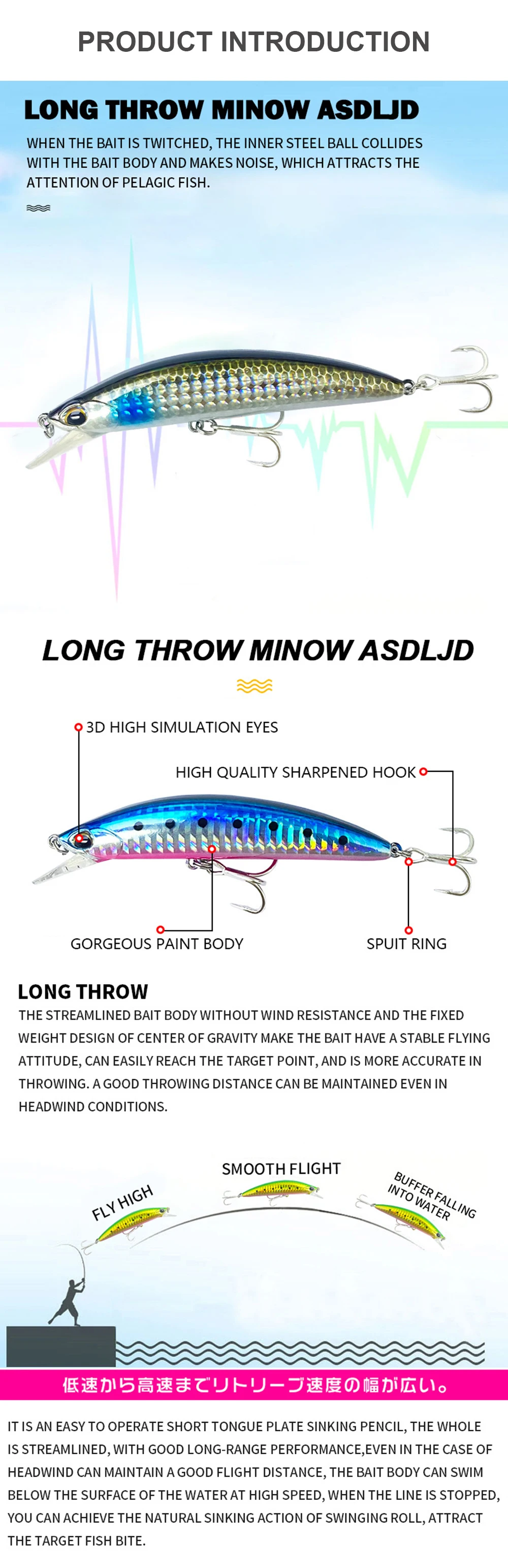 6.Bolas de metal: bolas de acero inoxidable en el interior, para mantener el equilibrio del señuelo de pesca, para lanzar a distancia más lejana.