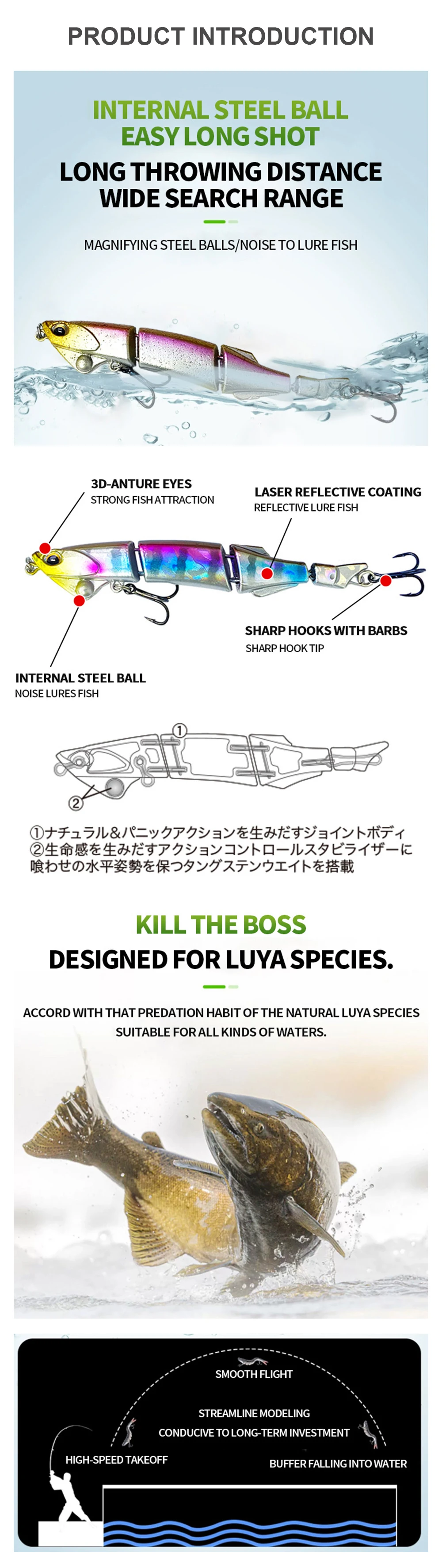 1.El cuerpo del cebo adopta materiales avanzados de protección ambiental, no solo tiene una alta resistencia al impacto, sino que tampoco produce sustancias nocivas para el medio ambiente.