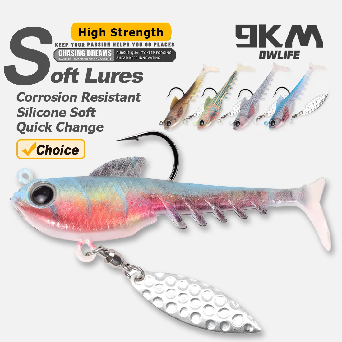 Los cebos de pesca de 9KM hechos de plástico personalizado de alta calidad son muy suaves y resistentes para resistir la picadura del pez y extienden efectivamente el tiempo de uso de su equipo de pesca.