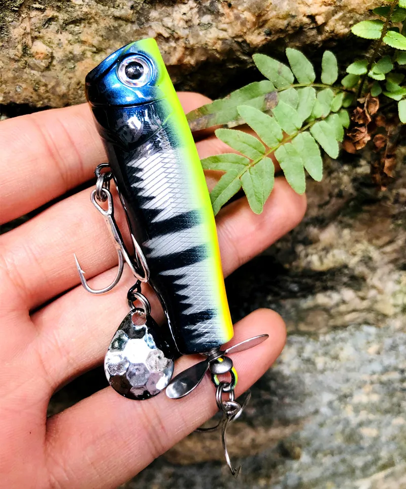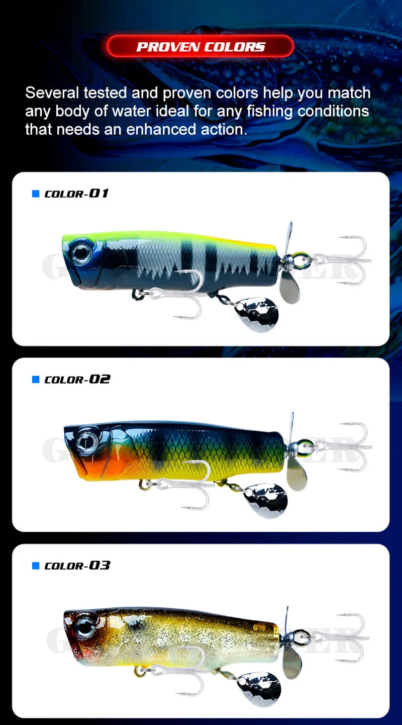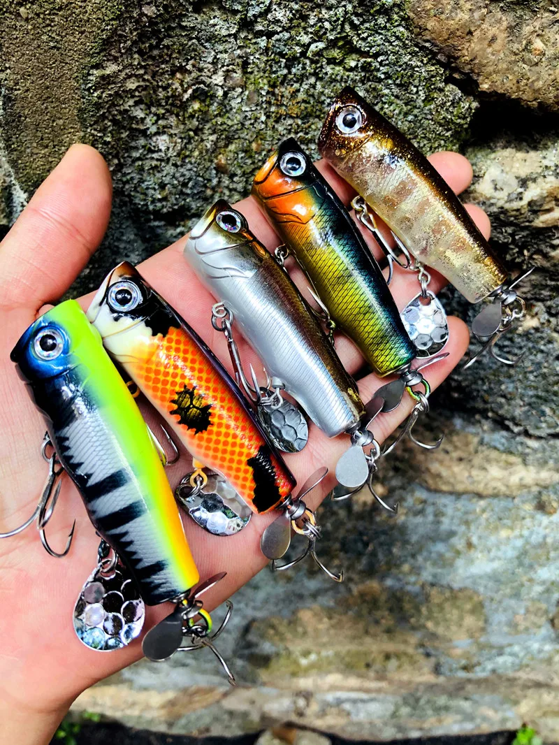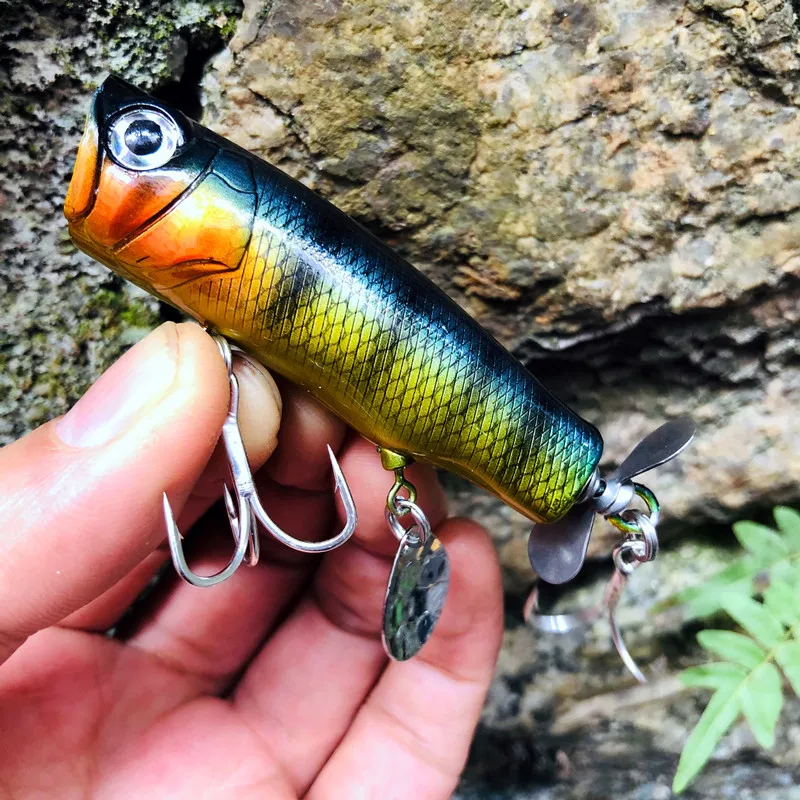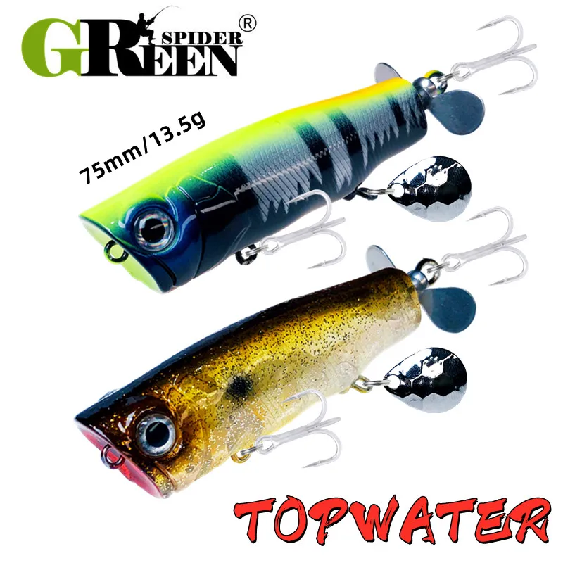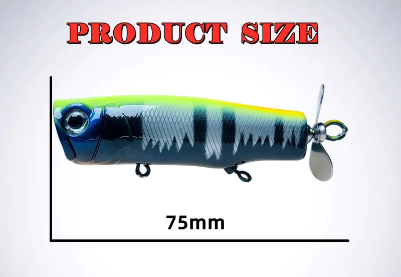 Señuelos de Pesca de agua, cebo Popper de 75mm y 13,5g con lentejuelas, cebo Artificial duro, aparejos de pesca de lubina de agua salada