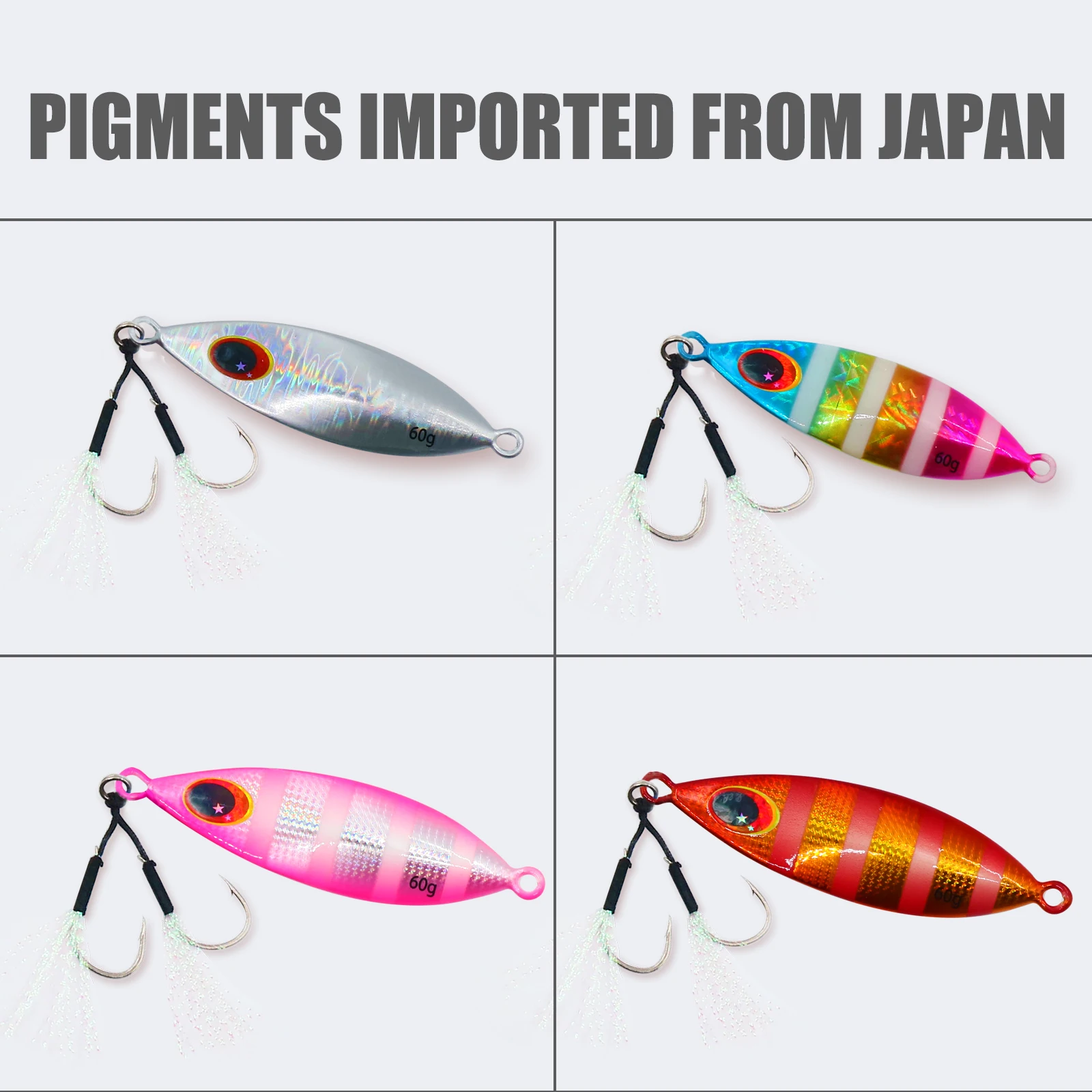 Fishing Metal Jig presenta un revestimiento corporal láser único que agrega un toque de sofisticación al mismo tiempo que refleja la luz de manera efectiva y atrae una variedad de peces depredadores.