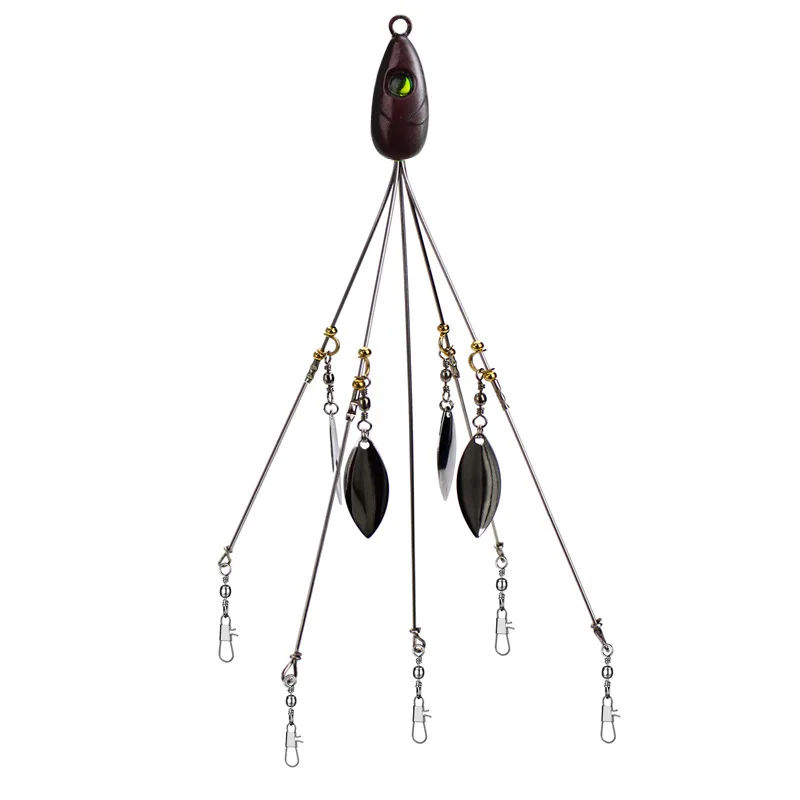 Juego de 11 piezas=1 aparejo Alabama + 5 anzuelos de pesca + 5 cebos blandos