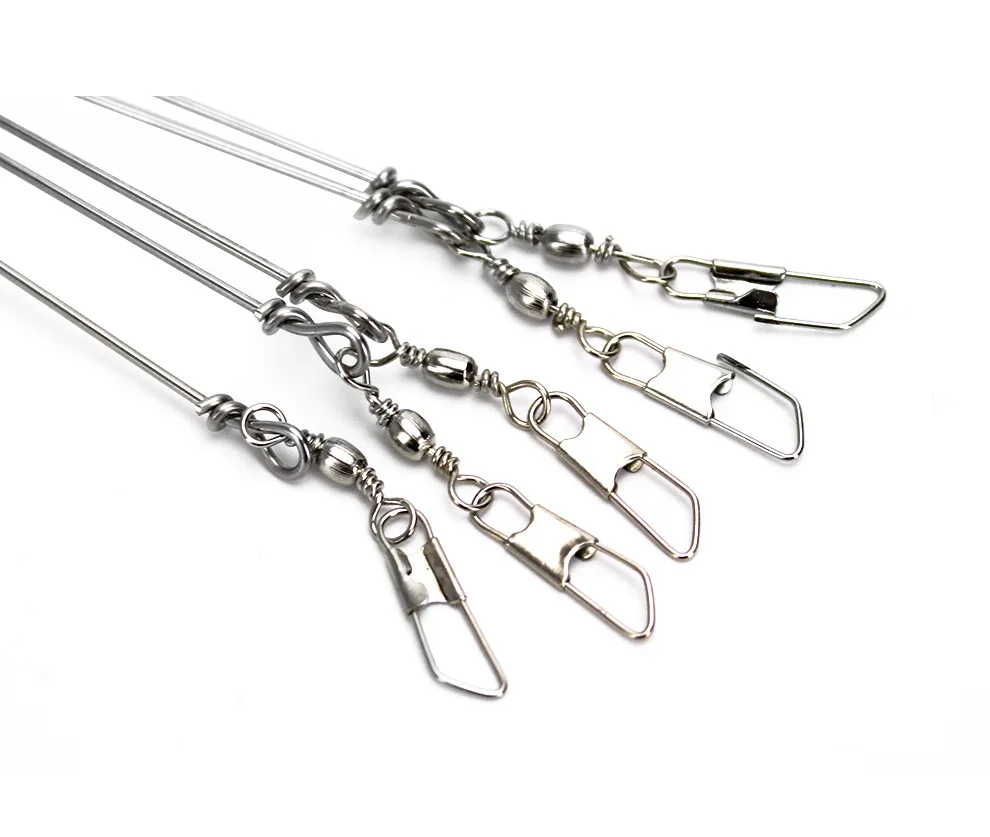 Pesca de simulación de aparejo de ataque grupal conectada alambre de acero de 4 cuerpos (con conector de 8 figuras y pasador giratorio) Señuelos de pesca y anzuelo fáciles de cambiar