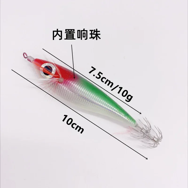 Señuelos de Pesca artificiales, anzuelos de calamar noctilucentes, cebo de sepia, Spinnerbait, camarones de madera, 100mm, 10g