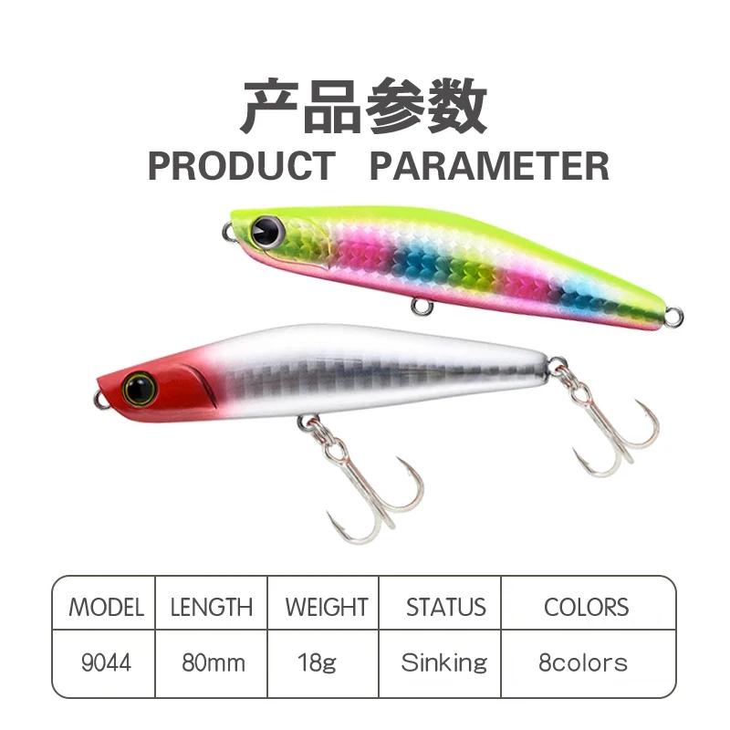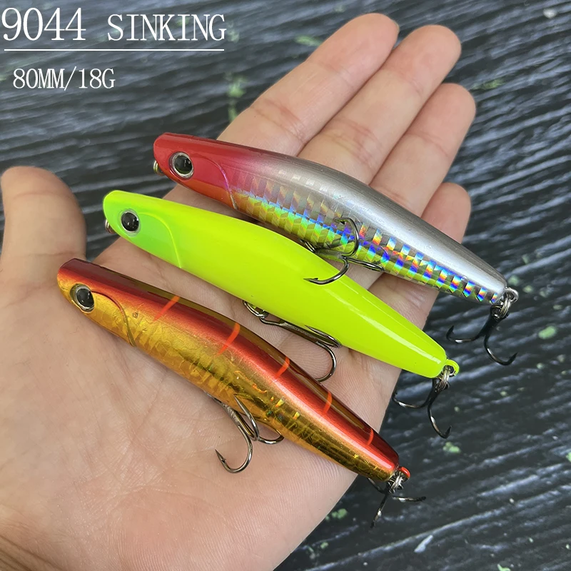 1 cebo de lápiz de 80mm y 18g para pesca, señuelo de Pesca japonés que se hunde, Wobbler Popper Bass, señuelo de trucha, Isca Pesca, cebo duro 9044