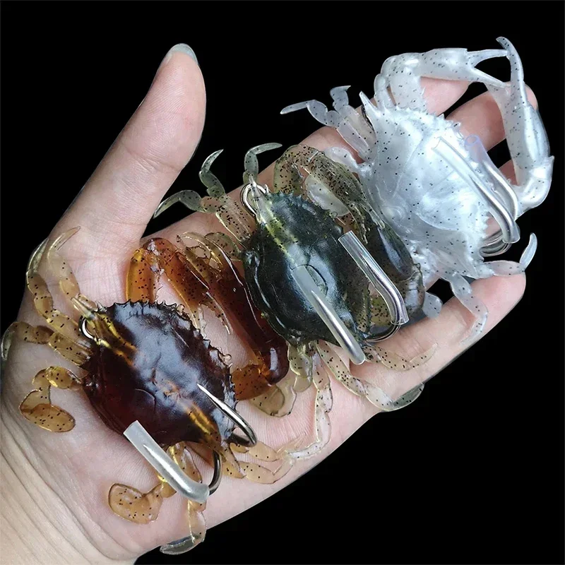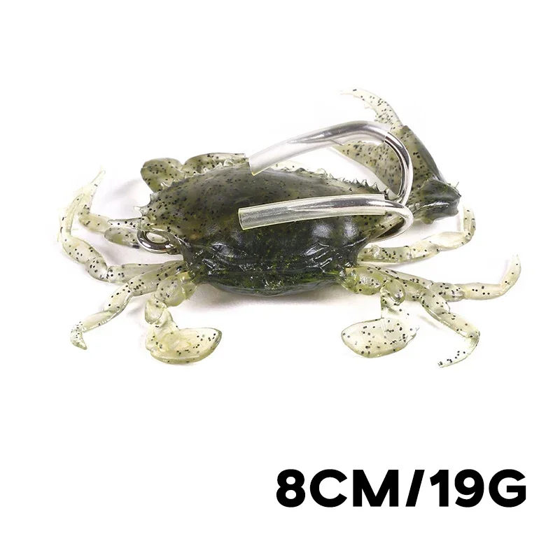 Señuelos de Pesca artificiales luminosos, cebo suave de silicona de cangrejo de simulación con aparejos afilados de pesca de agua dulce, 8cm, 19g