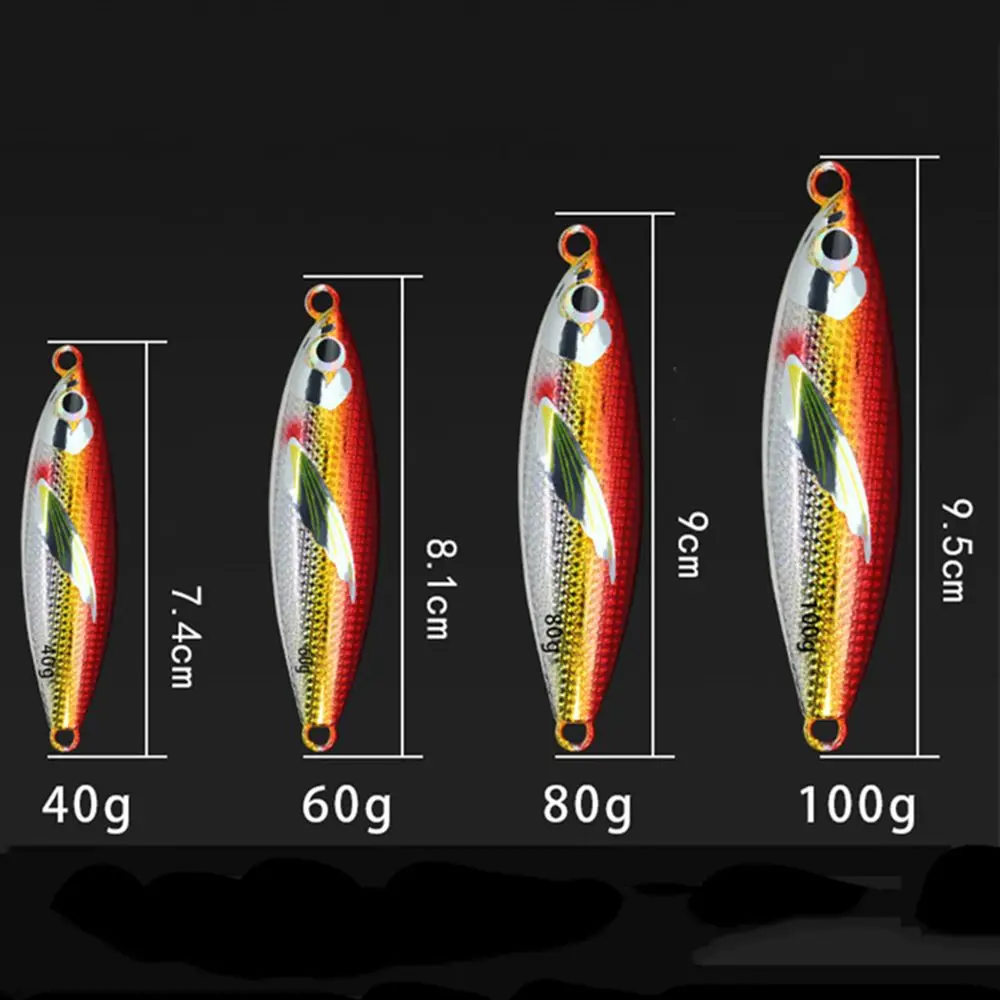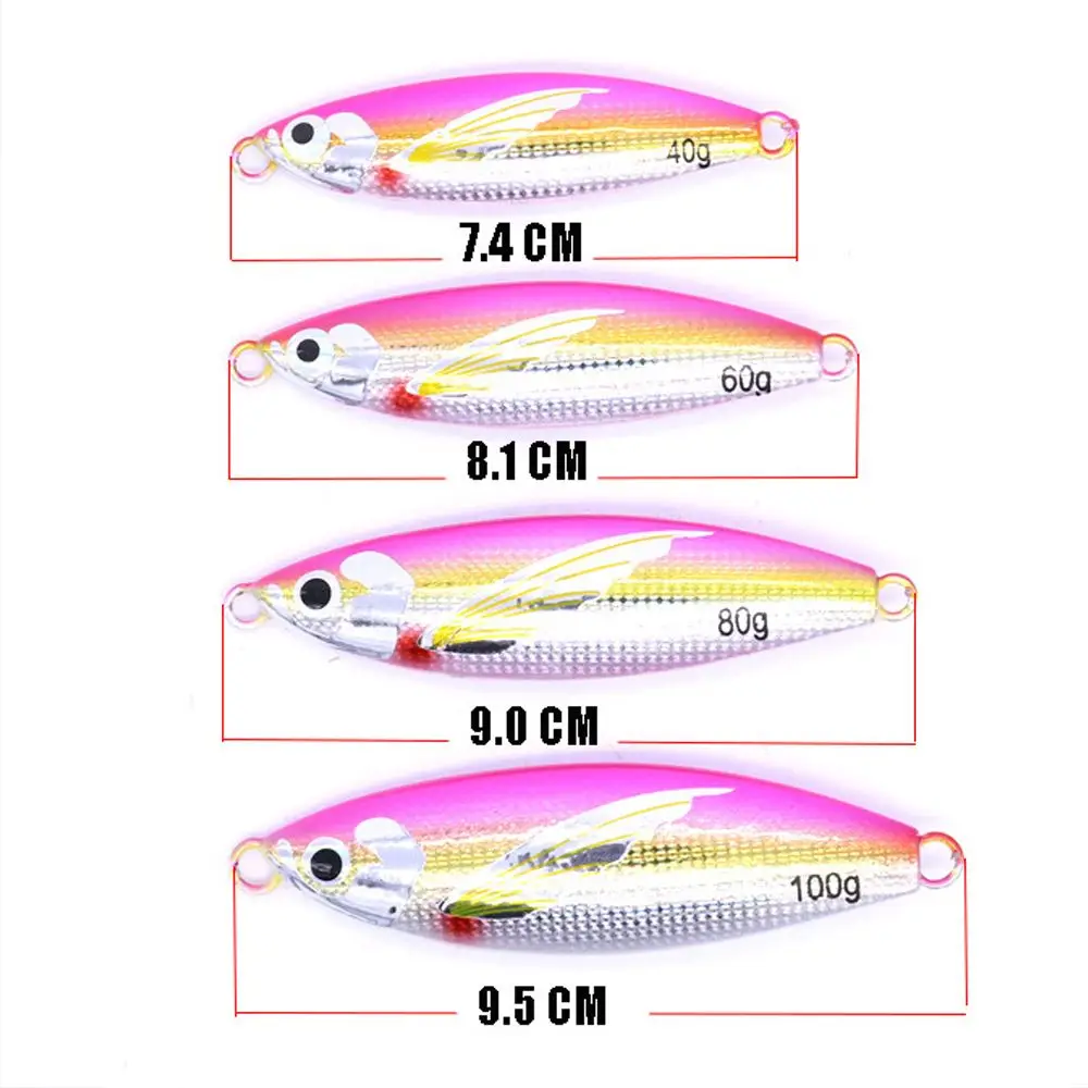 Nuevo y de alta calidad. Tipo: cebo Artificial Peso: 40G 60G 80G 100G Ganchos: sin gancho Paquete: bolsa de PVC Longitud: 7,4 CM, 8,1 CM,9CM, 9,5 CM COLOR: rosa, naranja, verde, azul Positie: pesca en la playa El paquete incluye: 1 piezas Notas: 1. Medición Manual, por favor permita un error de 1 ~ 3mm, gracias. 2. Debido a la diferencia entre diferentes monitores, la imagen puede no reflejar el color real del artículo. Garantizamos que el estilo es el mismo que se muestra en la imagen.