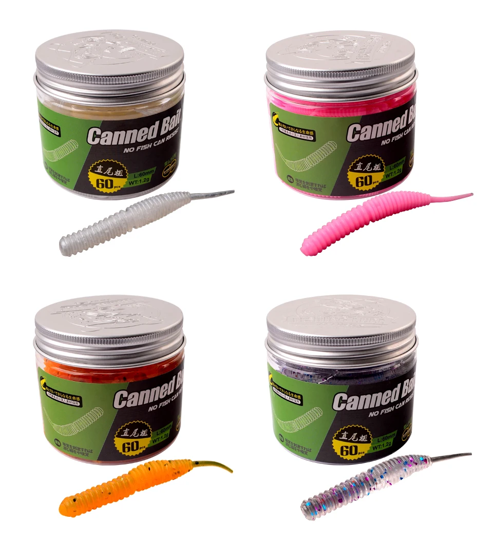 Señuelos de Pesca artificiales de silicona Wobbler, aguja de cebo suave falsa, gusano de cola recta para curricán, Lucio, carpa, señuelo de mar, 1,2g, 60 unidades