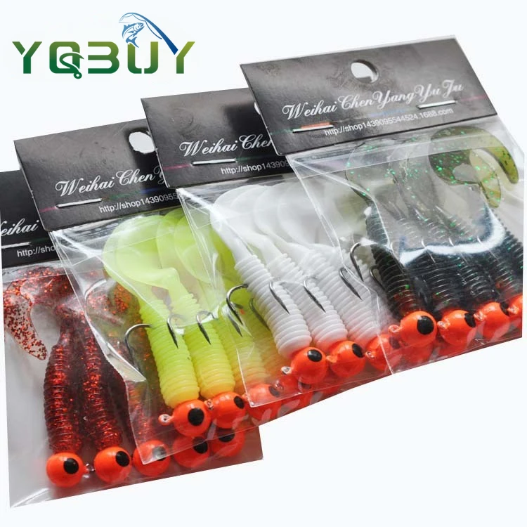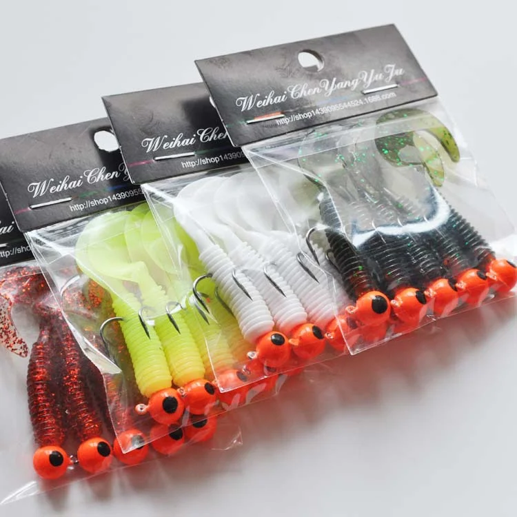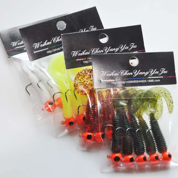 Señuelos de pesca biónicos suaves, 5 uds., anzuelo de plomo de 5g, 6cm, cebo suave de gusano para pesca de lubina, cebos de natación de agua dulce