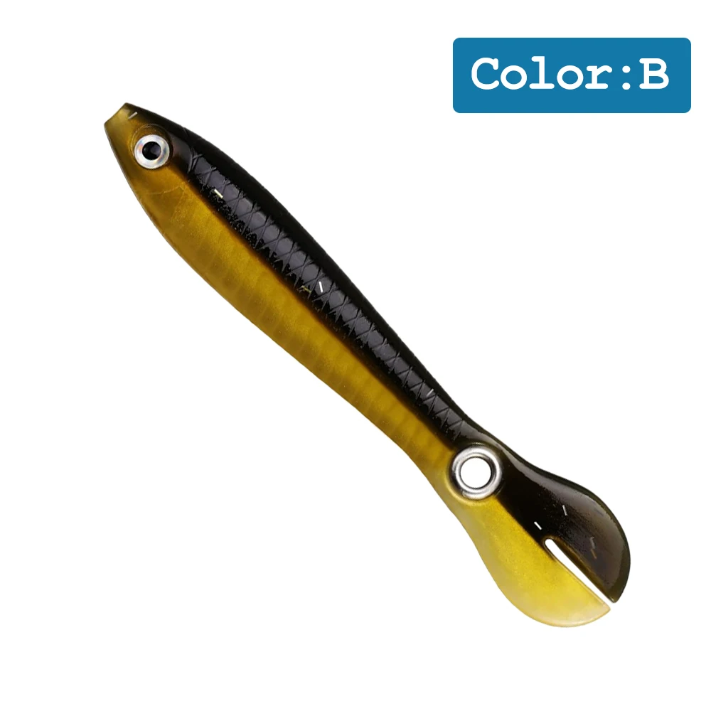 Este señuelo posee el agujero único en la cola. Coloque la línea de pesca a través del agujero y tire, saltará y moverá su cuerpo en el agua, como una locha lesionada.