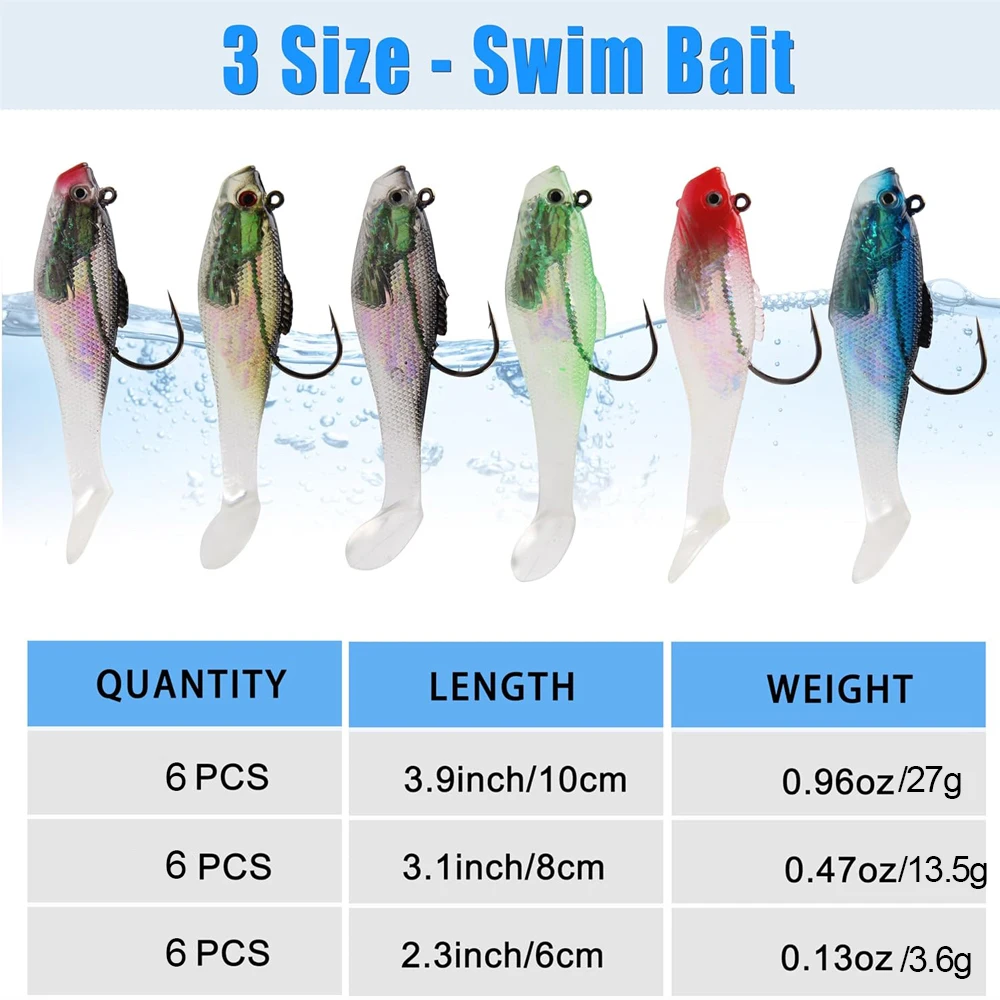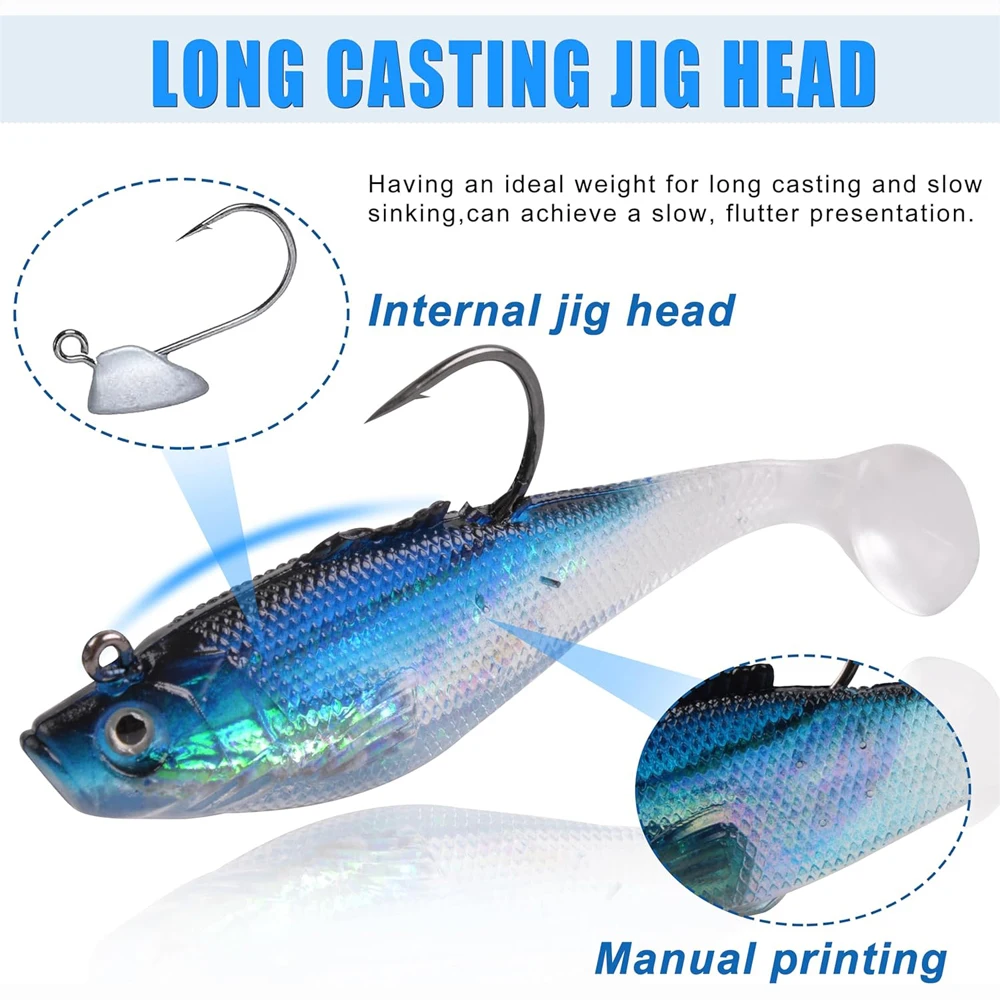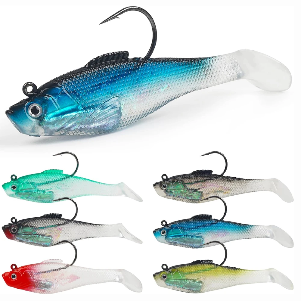 1.Los señuelos de pesca Swimbaits cuentan con ojo de pez 3D, cuerpos flexibles y 6 colores vivos, que brindan un atractivo irresistible a los peces;La estructura del cuerpo flexible del cebo le permite imitar la forma en que los peces se mueven de forma natural, lo que lo hace más atractivo para una variedad de especies de agua dulce y salada, aumentando la probabilidad de que se levantarán.