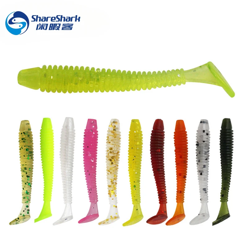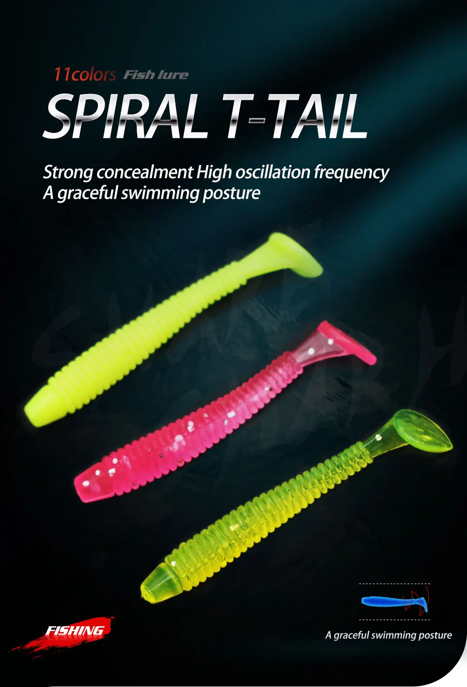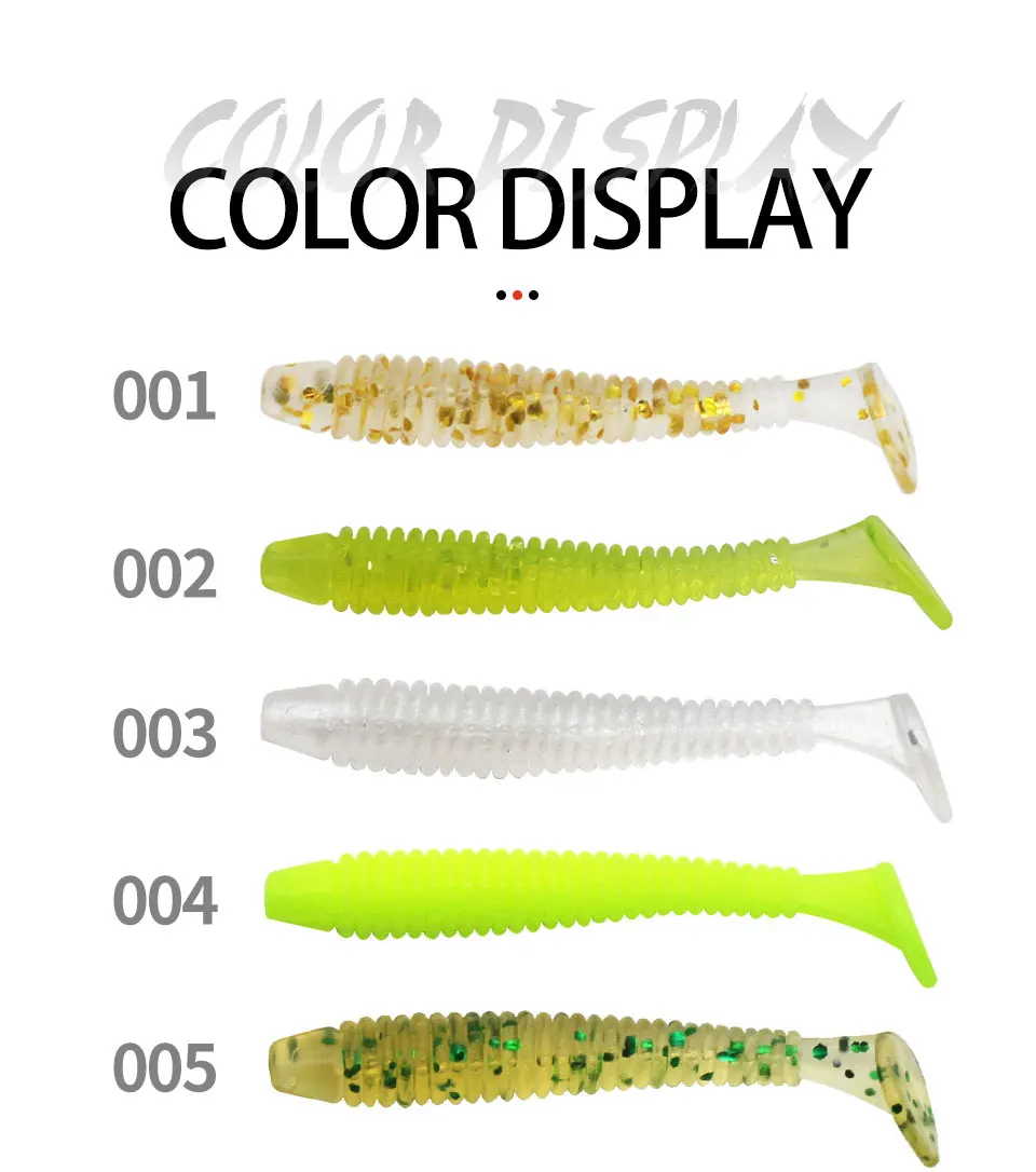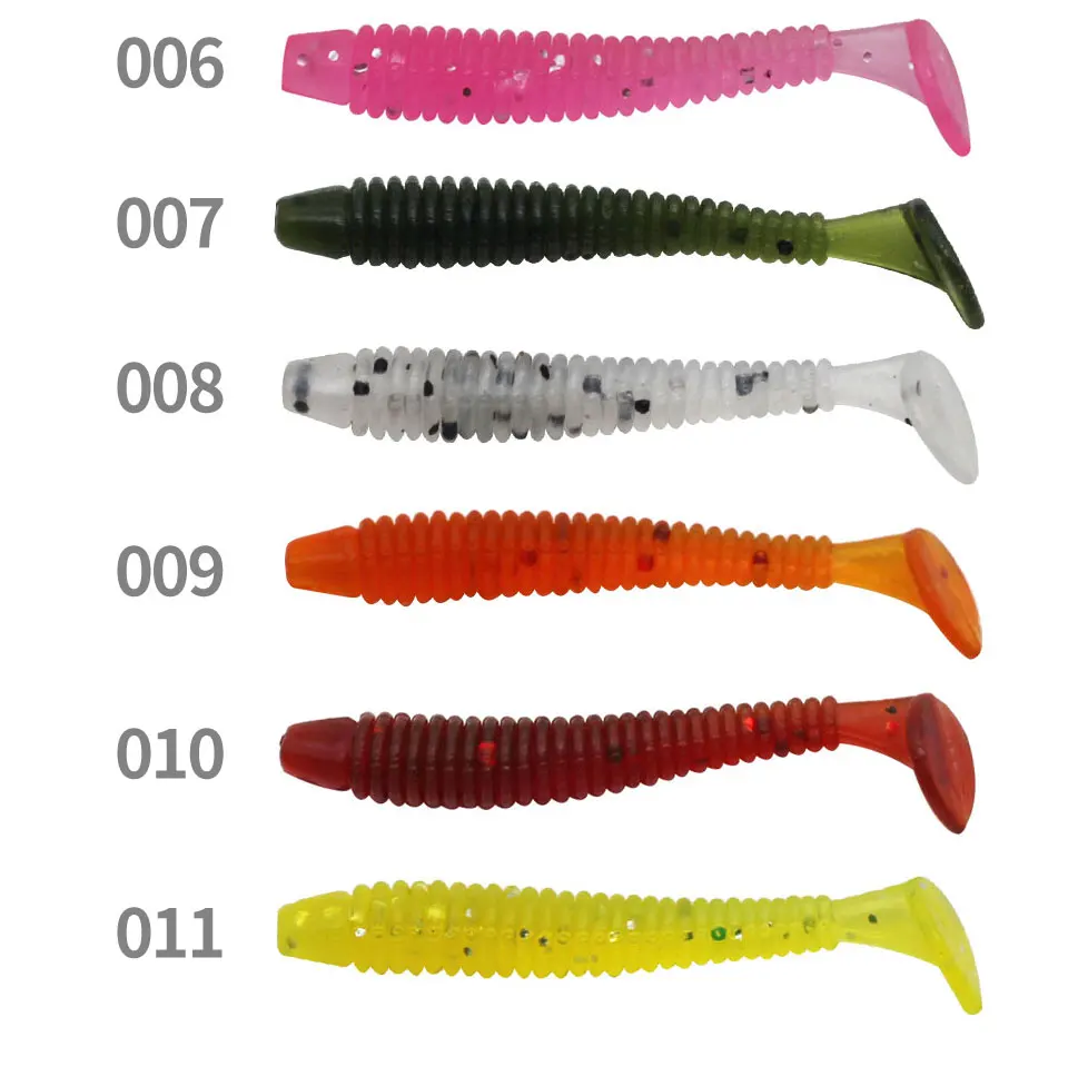Señuelos de pesca suaves de 5cm, paleta de plástico, Swimbaits con cola en T, cebos de gusano, cebo para lubina, accesorio para aparejos de peces