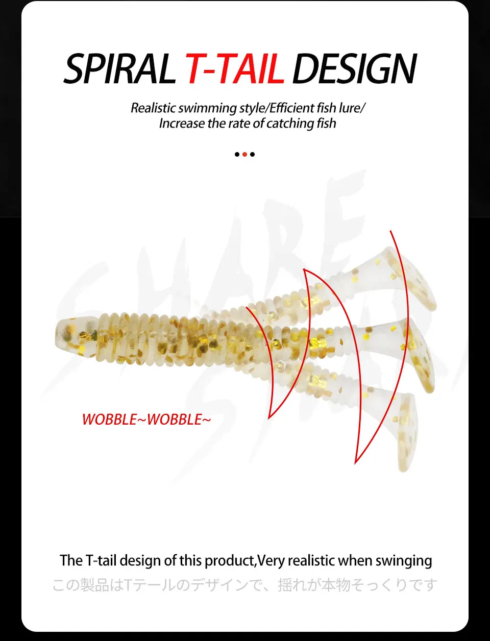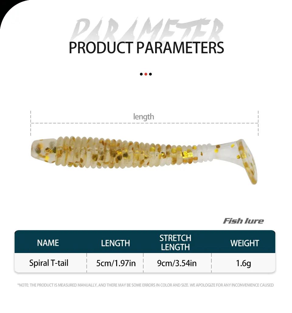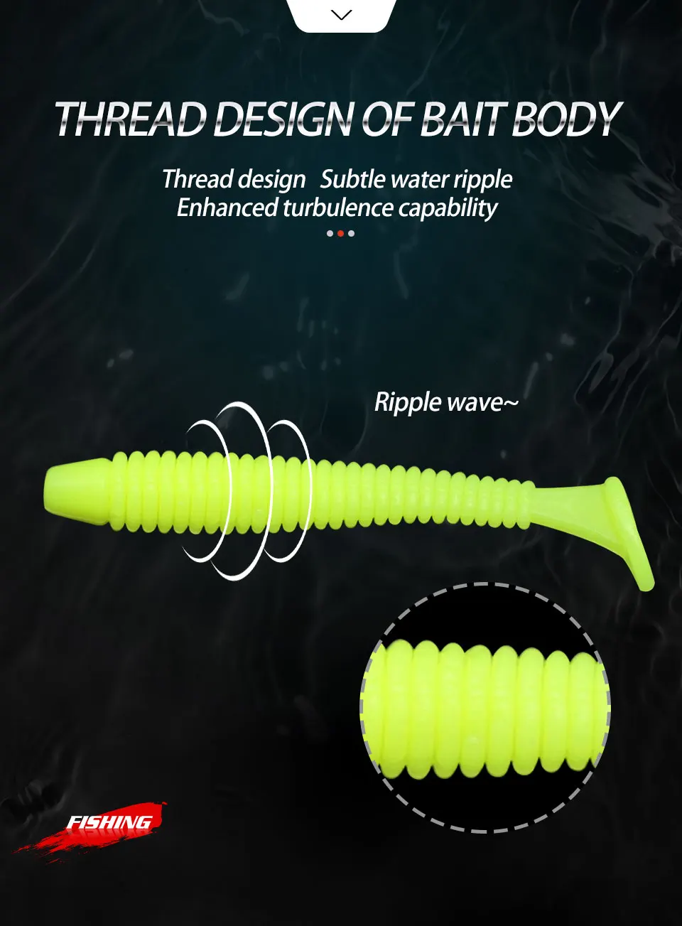 Señuelos de pesca suaves de 5cm, paleta de plástico, Swimbaits con cola en T, cebos de gusano, cebo para lubina, accesorio para aparejos de peces