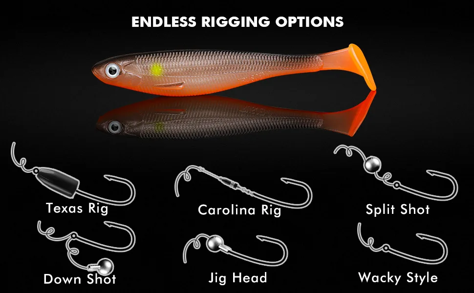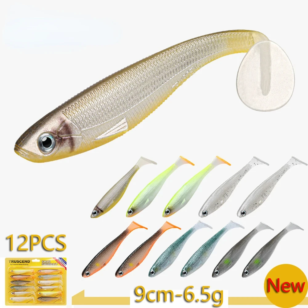 Señuelos de Pesca blandos artificiales de cola en T, Wobblers de Pesca, Señuelos blandos de silicona, gusano de sábalo, cebos de lubina, ojos 3d, 12 piezas