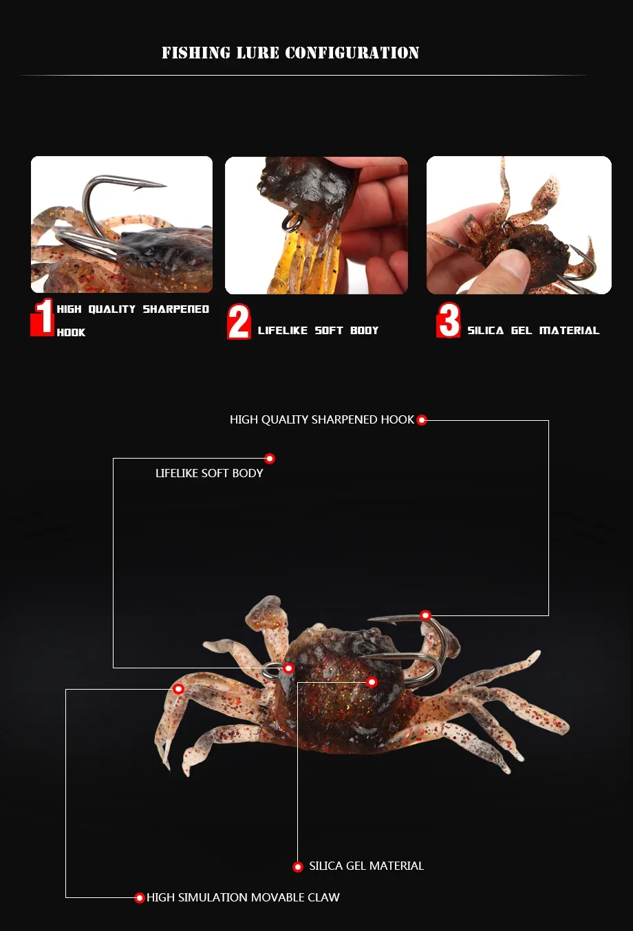 Señuelos de pesca blandos, cebo Artificial de cangrejo con anzuelos afilados, señuelo de Jigging, aparejos de criatura marina, cebo falso, 10cm, 35g, 1 ud.