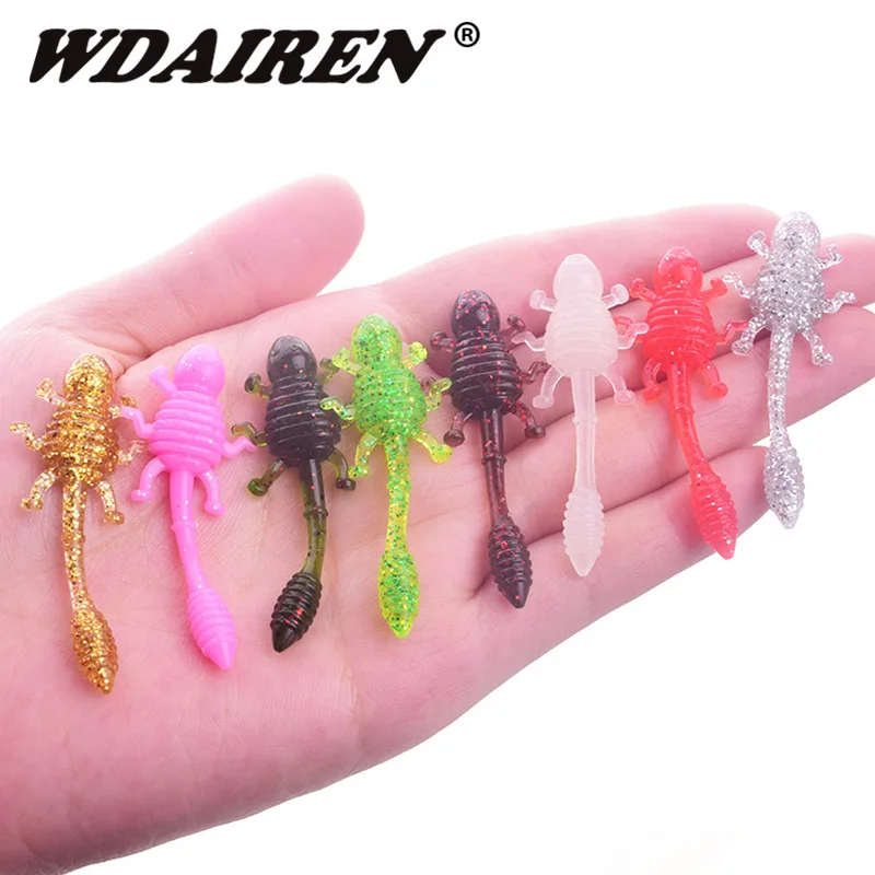 Marca: WDAIRENTipo de señuelo: cebo blando de siliconaLongitud: 50mmPeso: 1,15gColor: 8 colores diferentesCaracterísticas: Olor a sal/camarónMaterial: silicona/plásticoEmbalaje: bolsa especial de cebo blando de la marca WDAIRENLista de embalaje:10 señuelos blandos