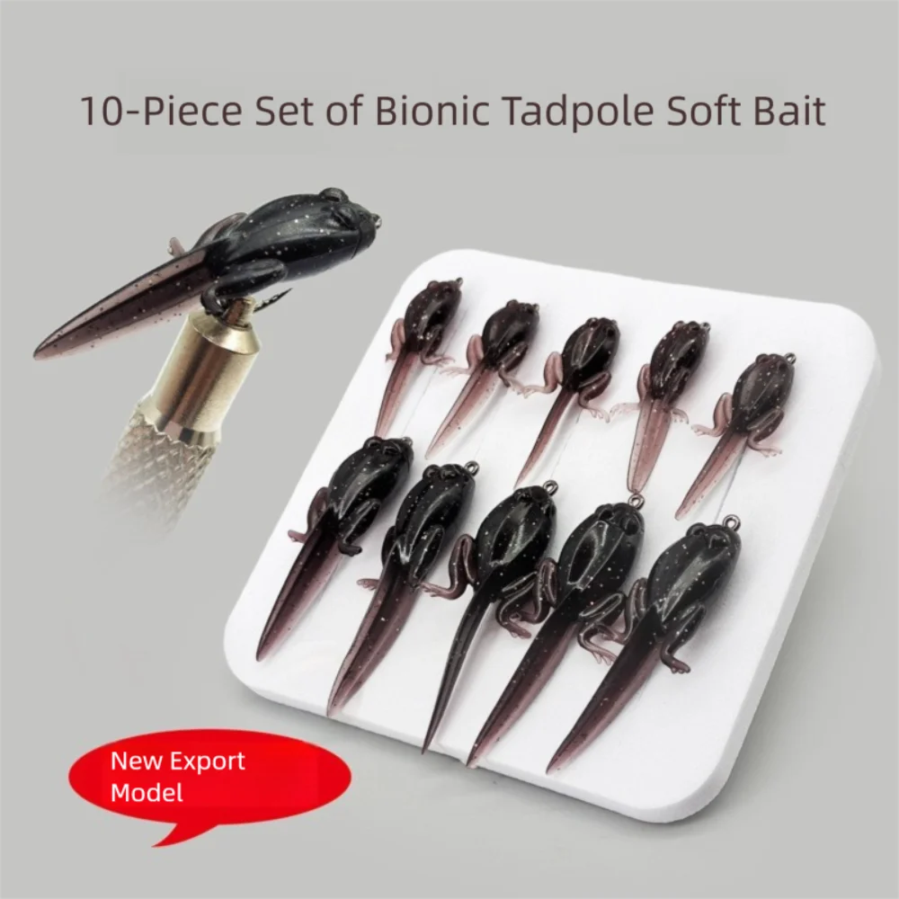 Features: 1.Soft TPE Material: Made from soft fishing lures material, this bionic tadpole bait provides a realistic dynamic effect, mimicking real movement to attract fish with artificial baits. 2.Excellent Tensile Strength: These swimbaits feature superior stretchability, allowing them to withstand significant force without breaking, ensuring durability and longevity. 3.Cold-Resistant Performance: With great resistance to low temperatures, these wobblers maintain natural swimming actions even in cold seasons, enhancing their fish-attracting power. 4.Tadpole Shape Design: Precisely replicating the shape of a tadpole, from the rounded head to the lively long tail, it showcases craftsmanship in detail, making it a reliable choice for anglers. 5.Reliable Angling Tool: Ideal for capturing attention in various water conditions, these bionic tadpole baits are a must-have for dedicated fishing enthusiasts. Specification: Origin: Mainland China Size: Box 86x84mm 3.39x3.31inch Soft bait 36mm/1.42inch Material: TPE Package Included: 10 x Fishing Soft Lures Note: Due to different monitor settings and lighting conditions, the actual color of the item may vary slightly from the pictures. Thanks for your understanding! Please allow a 1-2 cm difference in measurements due to manual measuring.