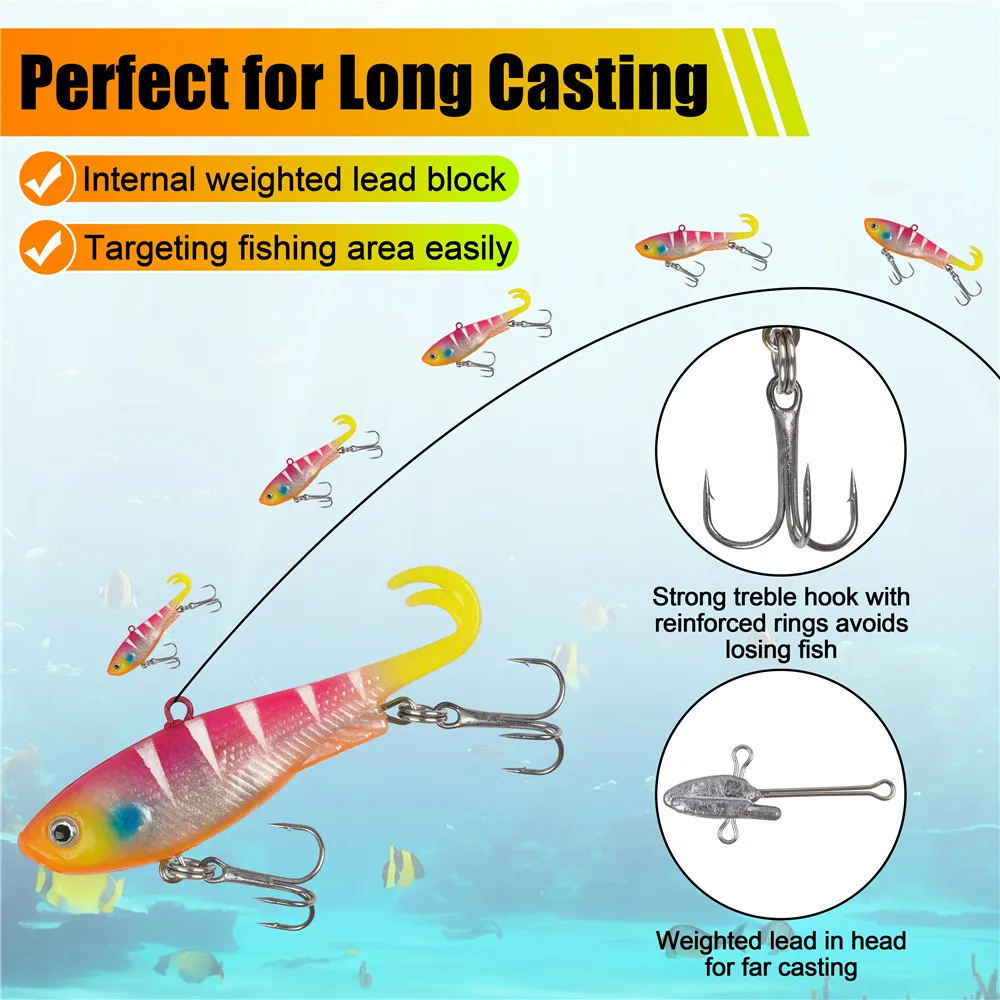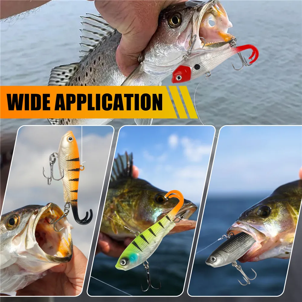 1. Los señuelos Jig cuentan con un cuerpo aerodinámico y un diseño de cola de remo para una natación más suave y funciona bien en todas las velocidades. El diseño de contrapeso en el vientre y la cola en T mejora la distancia de lanzamiento, logra una fundición óptima y efectos de hundimiento lento. Una vez que el cebo alcance la profundidad deseada, mantener una velocidad de recuperación constante asegurará un excelente rendimiento de aleteo.