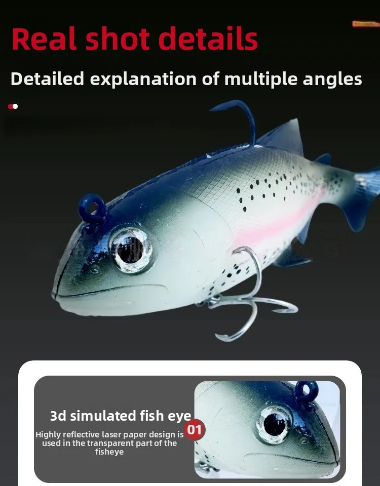 Señuelos de pesca blandos de PVC con cabeza de plomo, cebos artificiales para natación, cola en T, Wobblers de Swimbait de silicona con gancho, 20cm, 130g