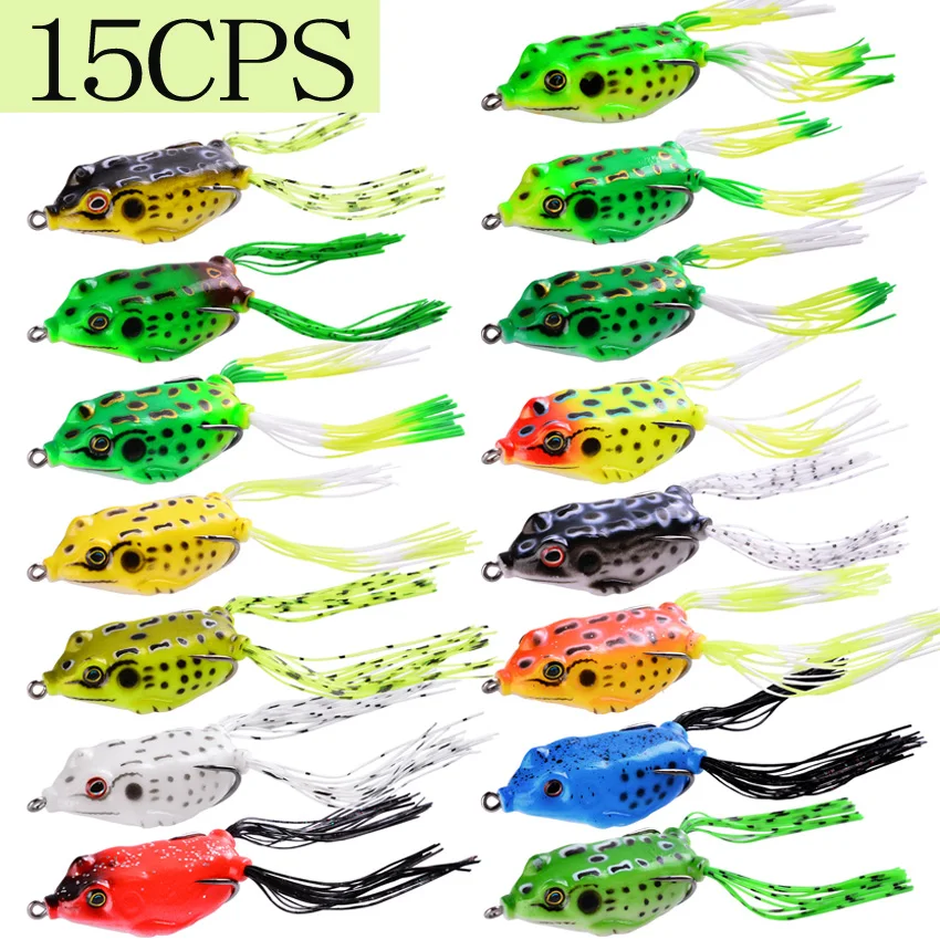 Señuelos de Pesca blandos de rana, anzuelos dobles, 6g, 13g, 15g, señuelo de pesca Artificial, aparejos de pesca de cebo blando, 15 unids/lote