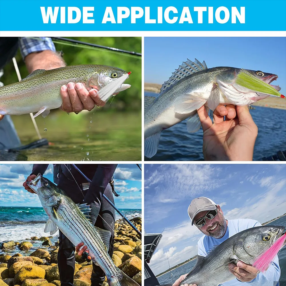 DISEÑO REALISTA: Hecho de genial bucktail, flash de cristal insertado con un tratamiento especial, proporciona una acción animada y una apariencia dinámica bajo el agua, agregando un teaser de bucktail a su plataforma de pliegues favorita para hacer locos a todos los peces.