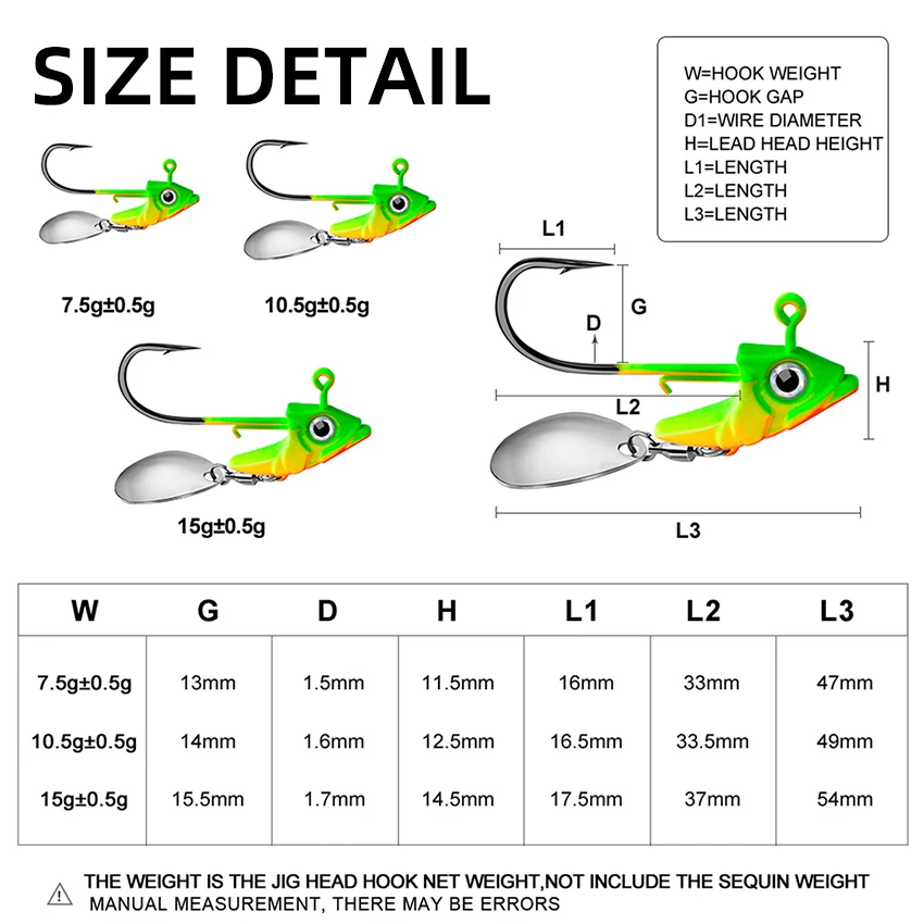 Señuelos de pesca con cabeza de anzuelo, 7,5g, 10,5g, 15g, hundimiento, giratorio, lentejuelas, cucharas de Metal, anzuelos de pesca, plantillas de Jigging, aparejos de cebos, 1 ud.