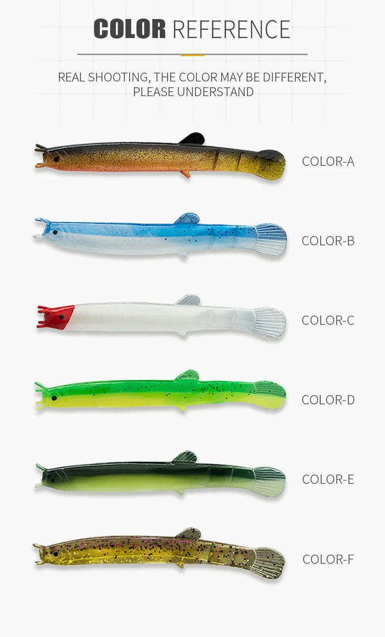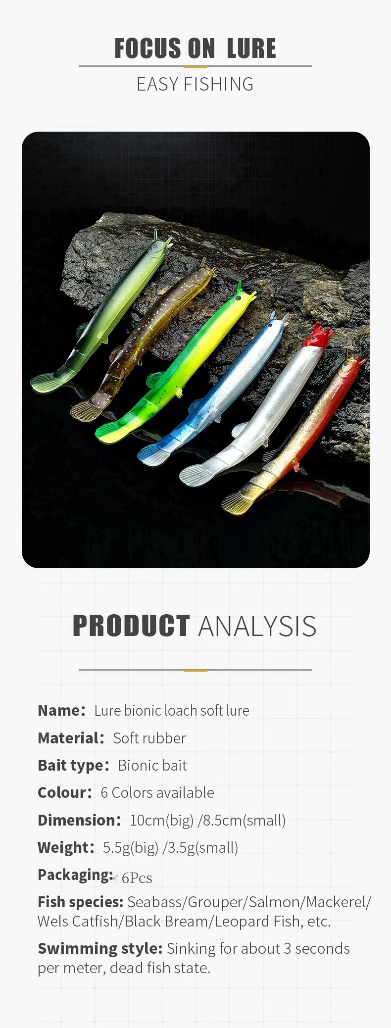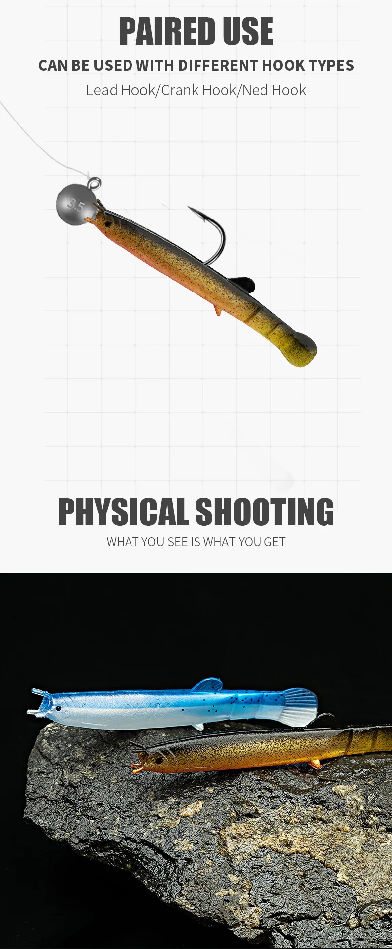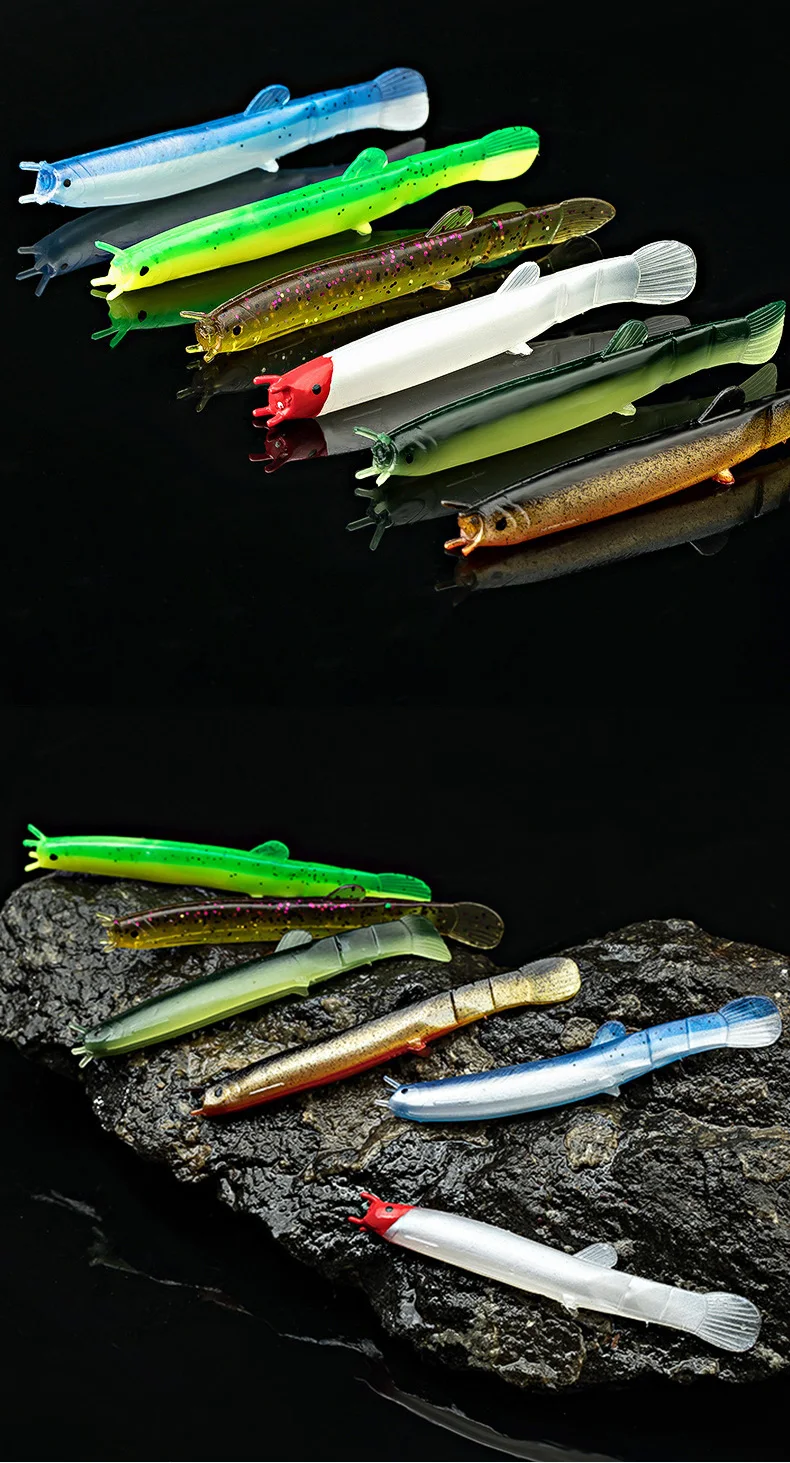 Señuelos de Pesca con cabeza de serpiente suave, 6 uds., 10cm, 8,5 cm, silicona Artificial, pez suelto, Swimbait, Anguila, gusanos, señuelos para Pesca de lubina