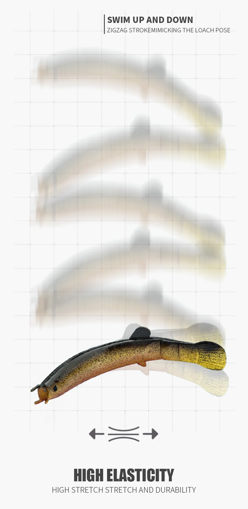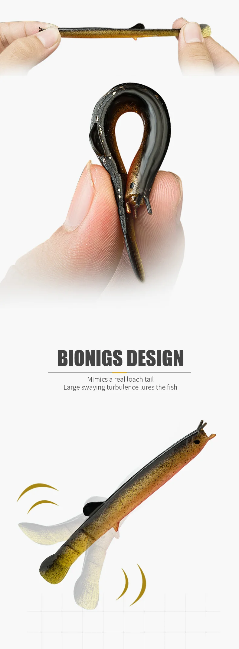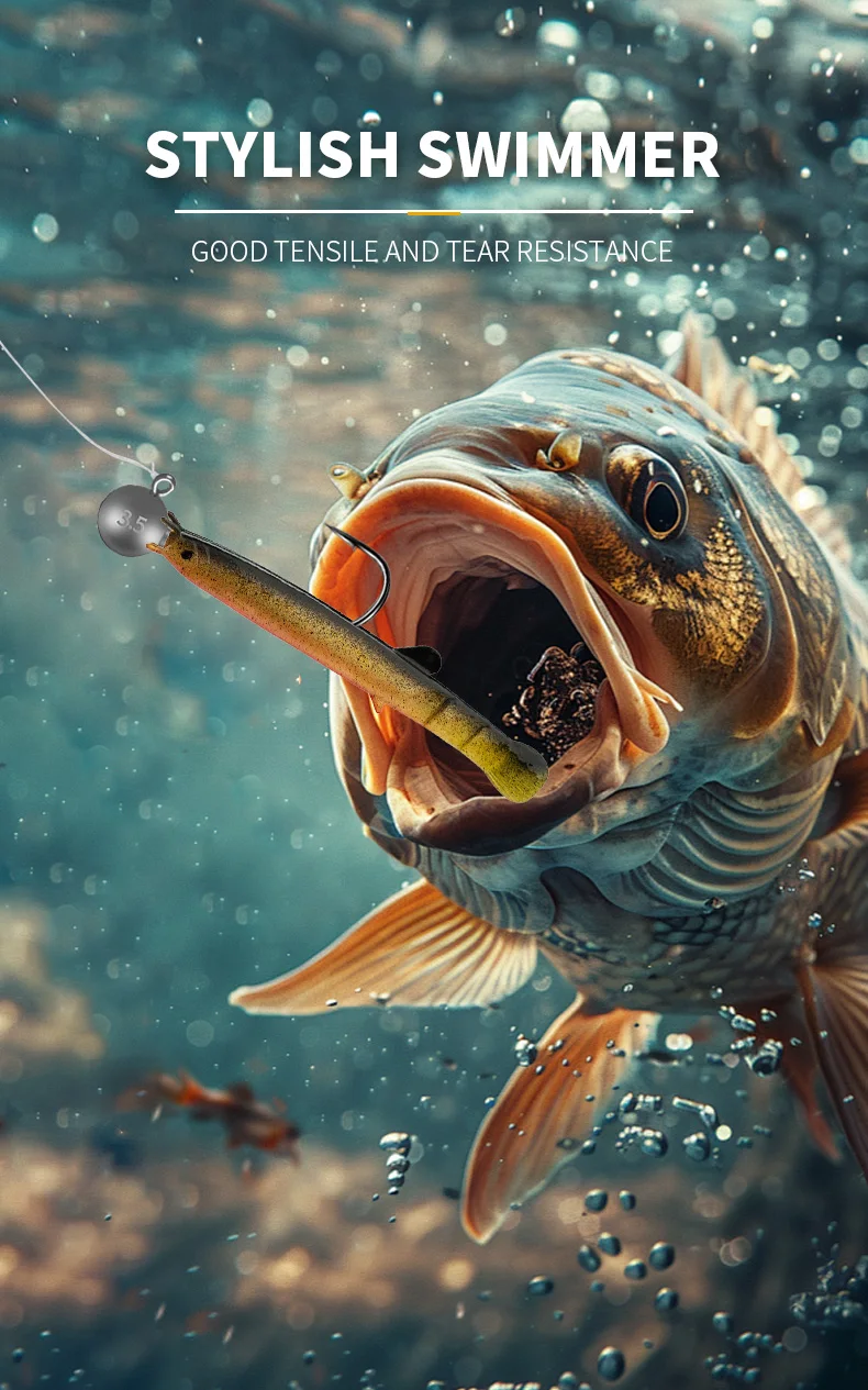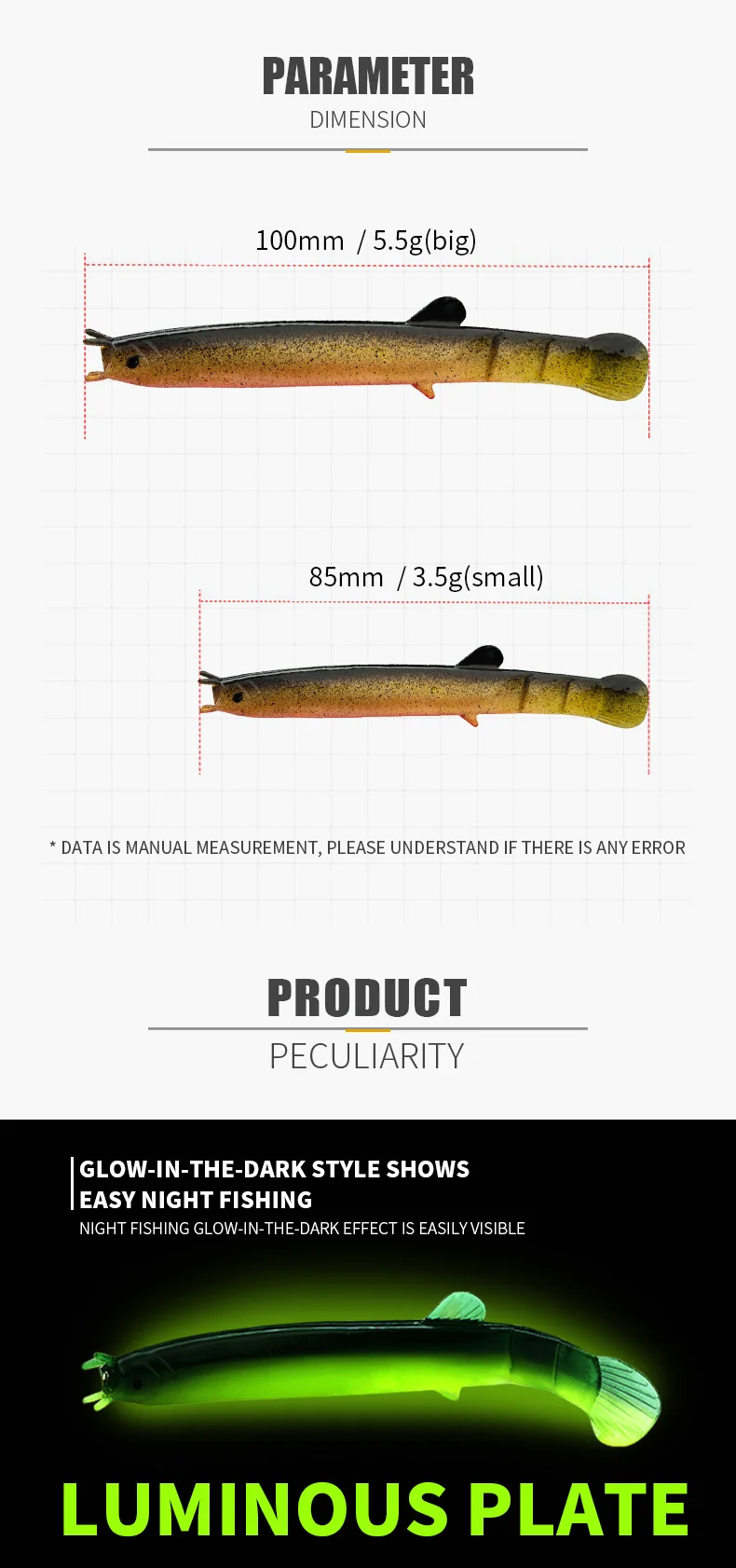 Señuelos de Pesca con cabeza de serpiente suave, 6 uds., 10cm, 8,5 cm, silicona Artificial, pez suelto, Swimbait, Anguila, gusanos, señuelos para Pesca de lubina