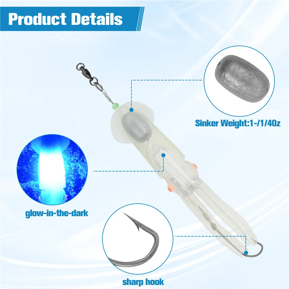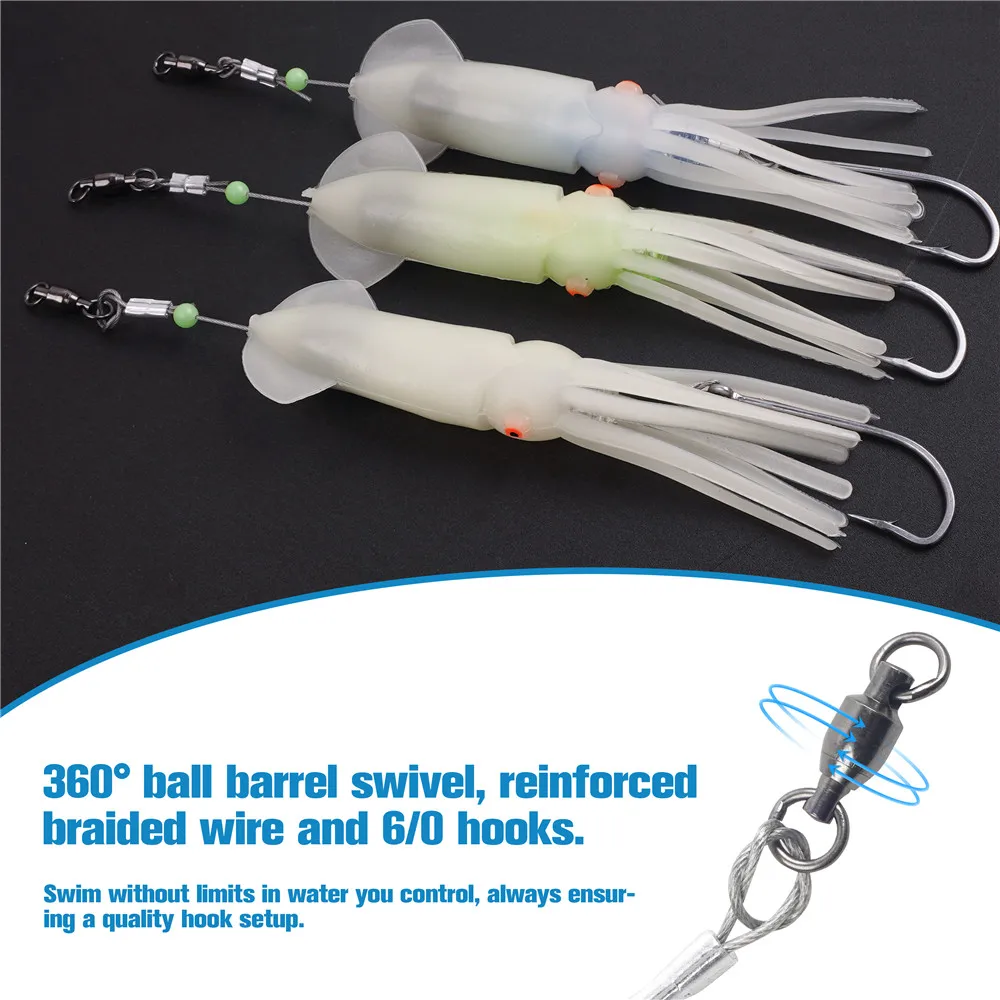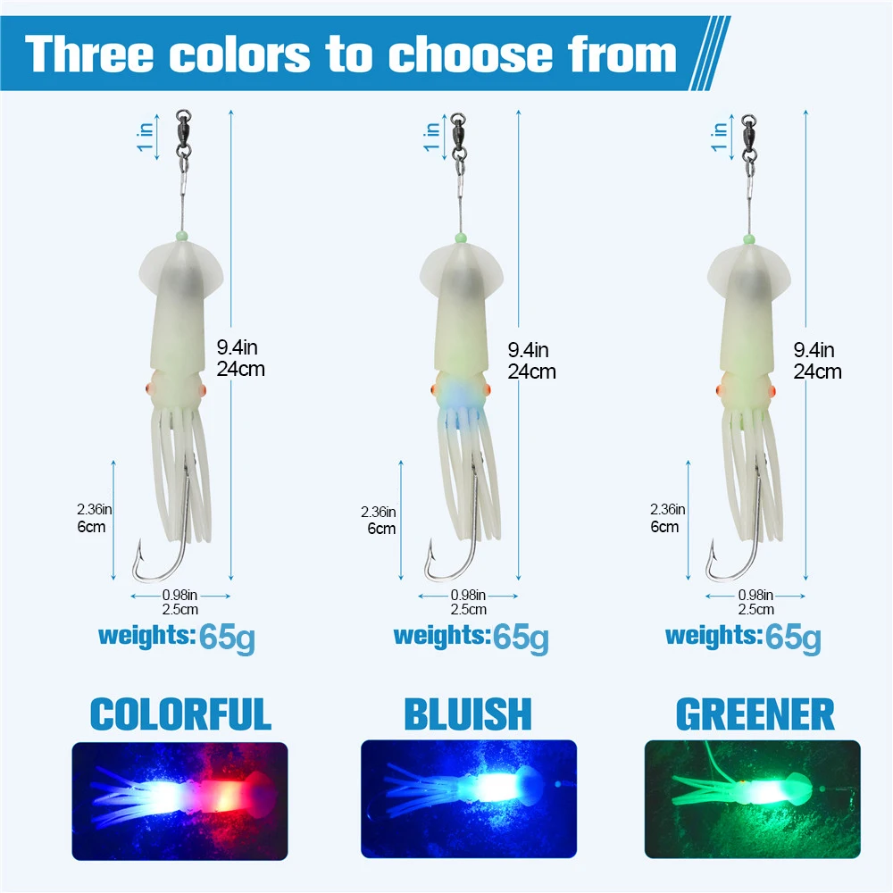 1.Piel y falda de color verde lechoso, parece casi un verdadero calamar nadando bajo el agua, mostrando su cuerpo brillante.más atractivo para los peces de caza grandes.