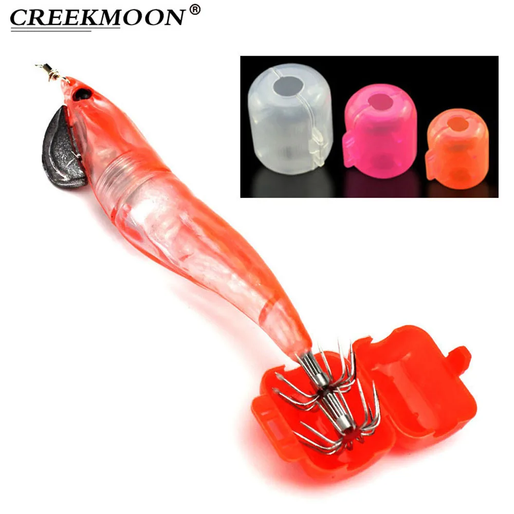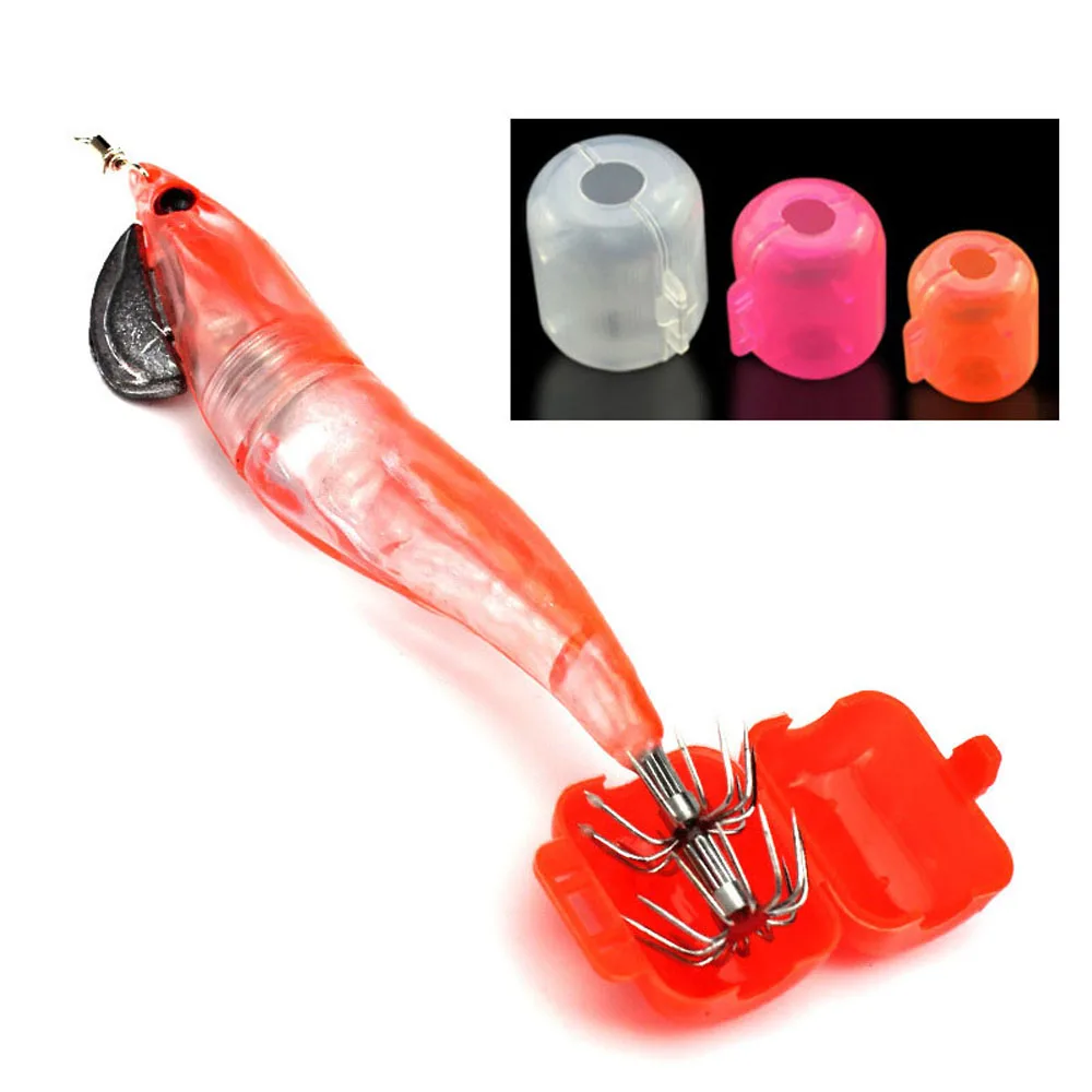 Señuelos de Pesca de calamar y pulpo, anzuelo Protector, cubierta de Camarón, señuelo de pescado, gorras de seguridad, accesorios de pesca, herramientas, 50 unidades por lote