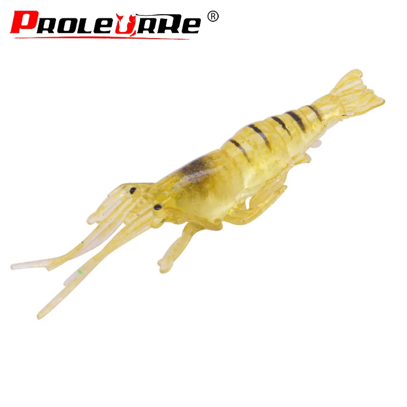 Señuelos de pesca de camarón suave, cebos artificiales de silicona, Wobbler Jig giratorio, aparejos de pesca de lubina, 45mm, 1g, 5 unidades por lote