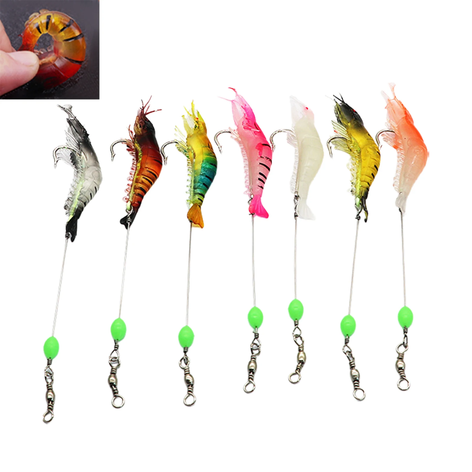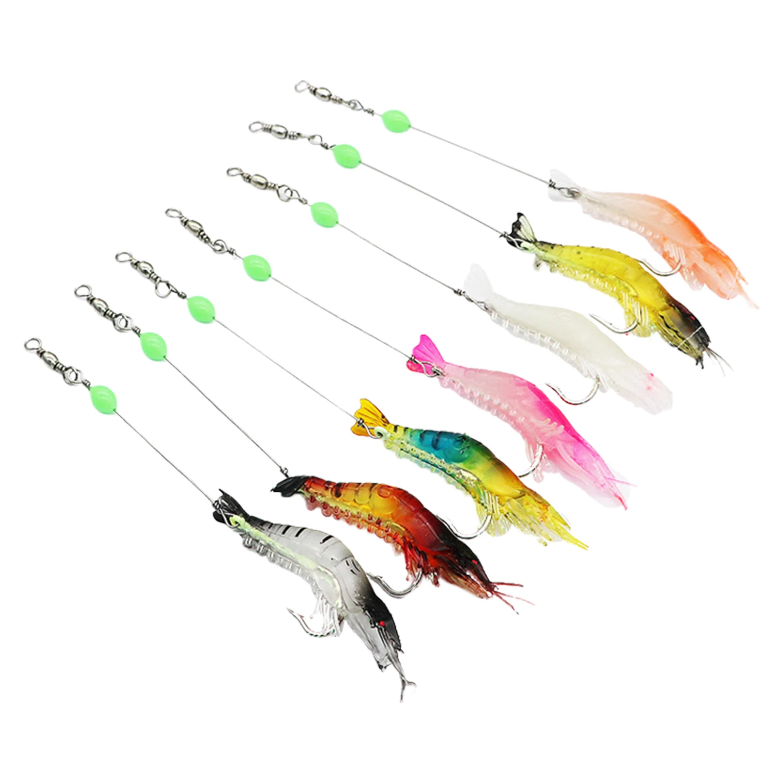 Juego de pesca versátil: este juego de señuelos blandos para camarones de 7 piezas incluye múltiples colores y estilos, lo que lo convierte en un accesorio de equipo de pesca universal adecuado para apuntar lubina, trucha, dorada y palan.