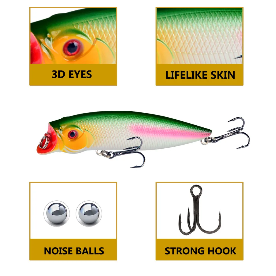 Señuelos de pesca con cebo flotante Popper, Wobblers Bass Crnakbait, aparejos de pesca, alta calidad, 6 colores disponibles, 9,5 cm, 11,5 g, 1 unidad