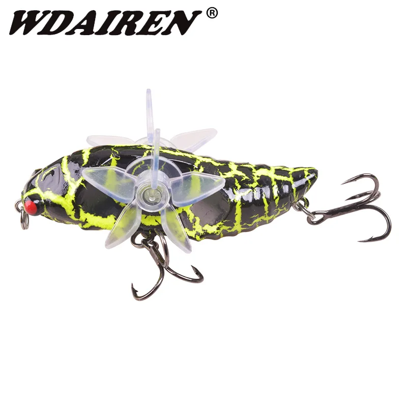 1 piezas de Señuelos de Pesca Cicada Whopper Topper Water Popper 7,5 cm 15,5g cebo Artificial Wobblers giratorios doble hélice Trolling Tackle