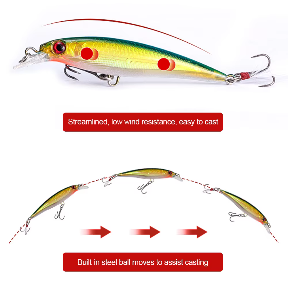 BOLAS DE ACERO INOXIDABLE: las bolas de acero en el cuerpo se transfieren durante el proceso de fundición, ayudando a la fundición, balanceo y hundimiento después de entrar en el agua. Recoja lentamente a una velocidad uniforme, girando hacia la izquierda y hacia la derecha en la misma capa de agua.