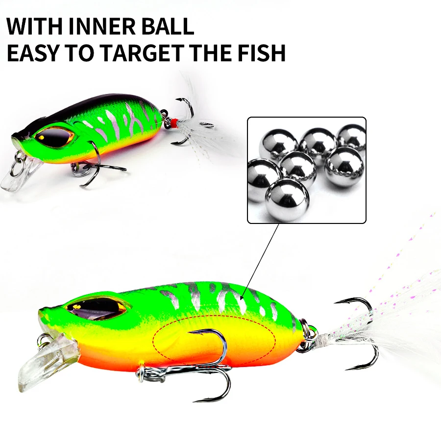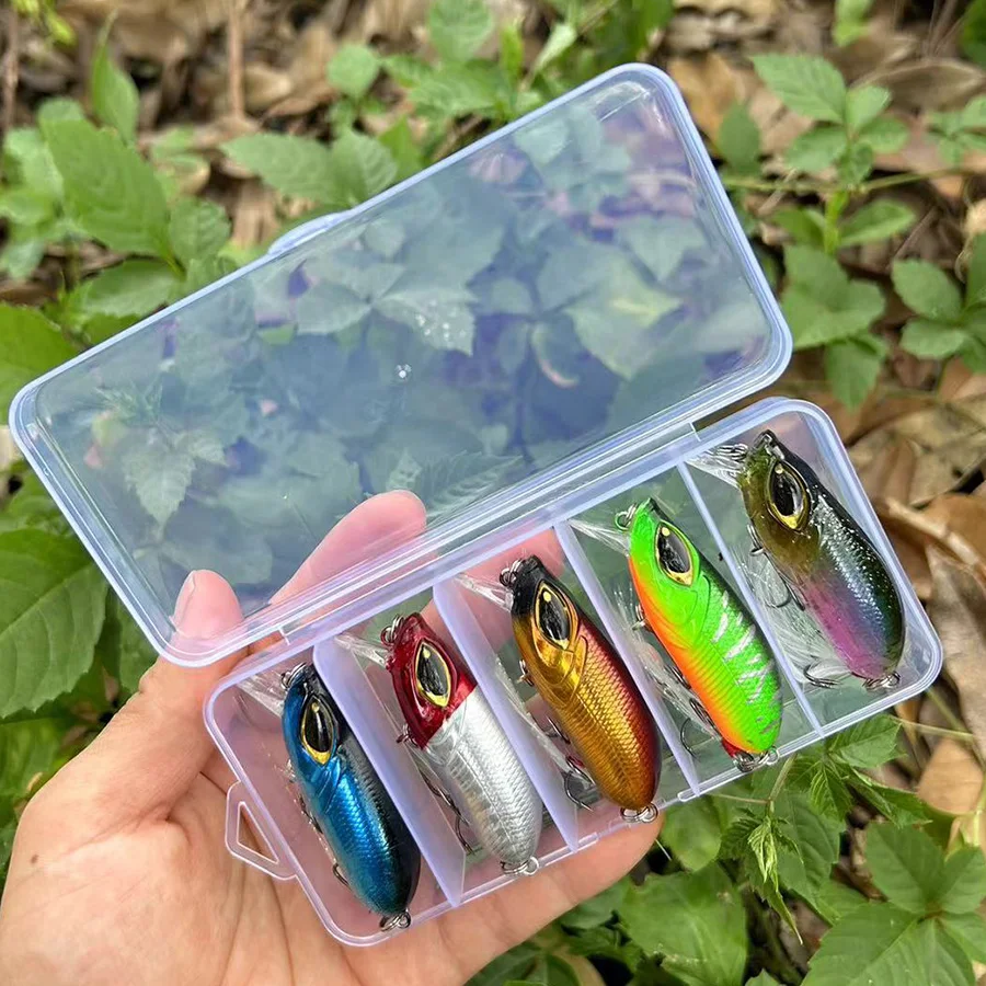 Señuelos de Pesca Crankbait Minnow de ojos grandes, bolas magnéticas, hundimiento lento, Wobbler Abs, cebo duro Artificial para aparejos de pesca, 5 unids/lote por caja