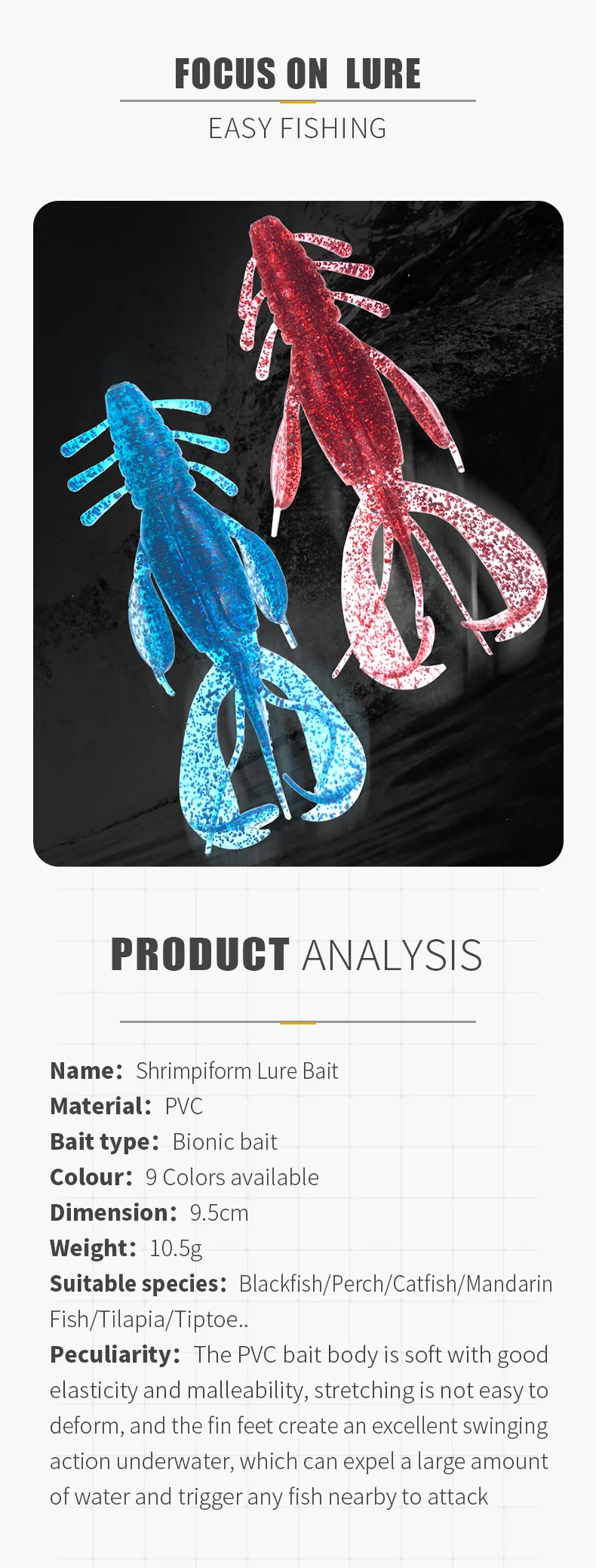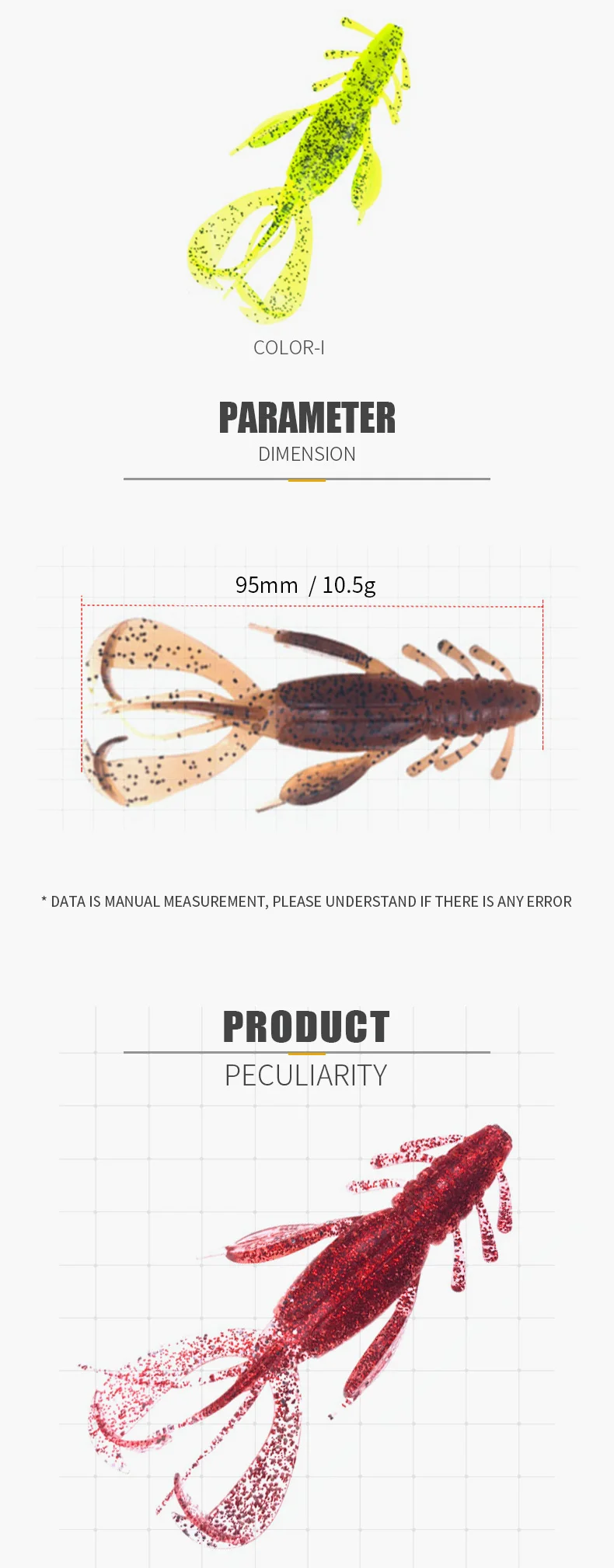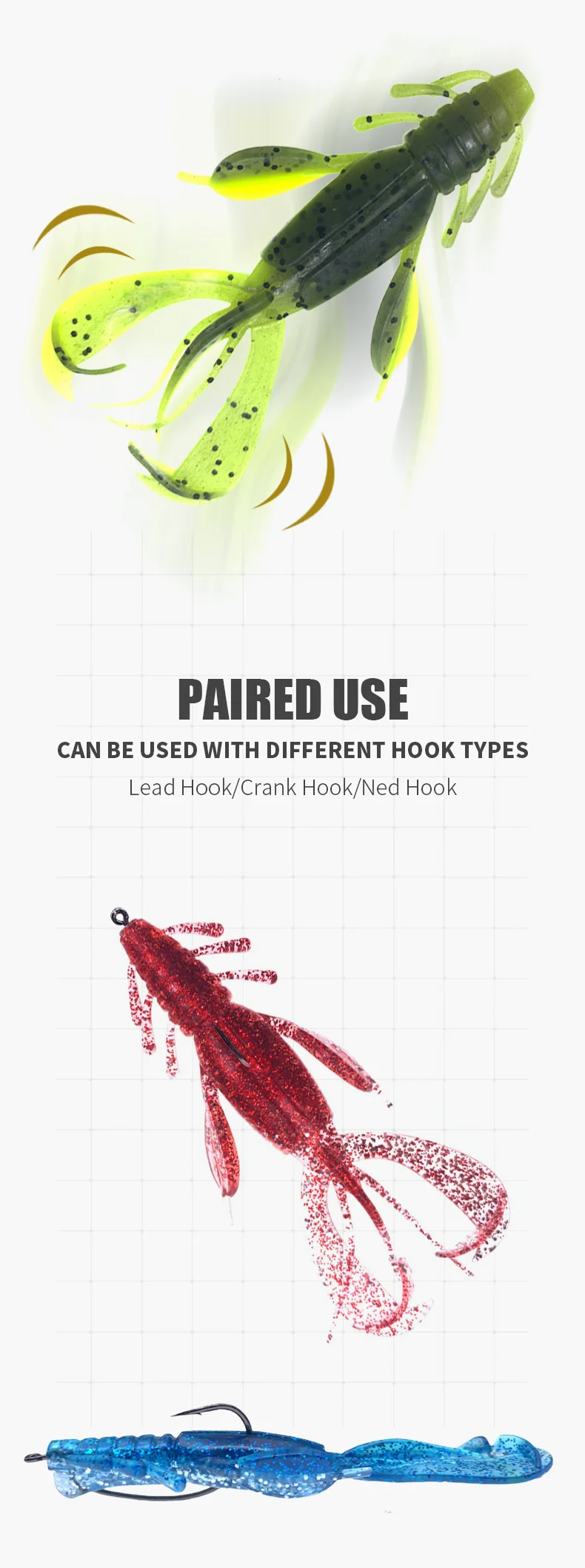 Señuelos de Pesca Crazy Crayfish Flapper, cebos de silicona suave de 9,5 cm, 10,5g, aparejos de pesca, 3 piezas