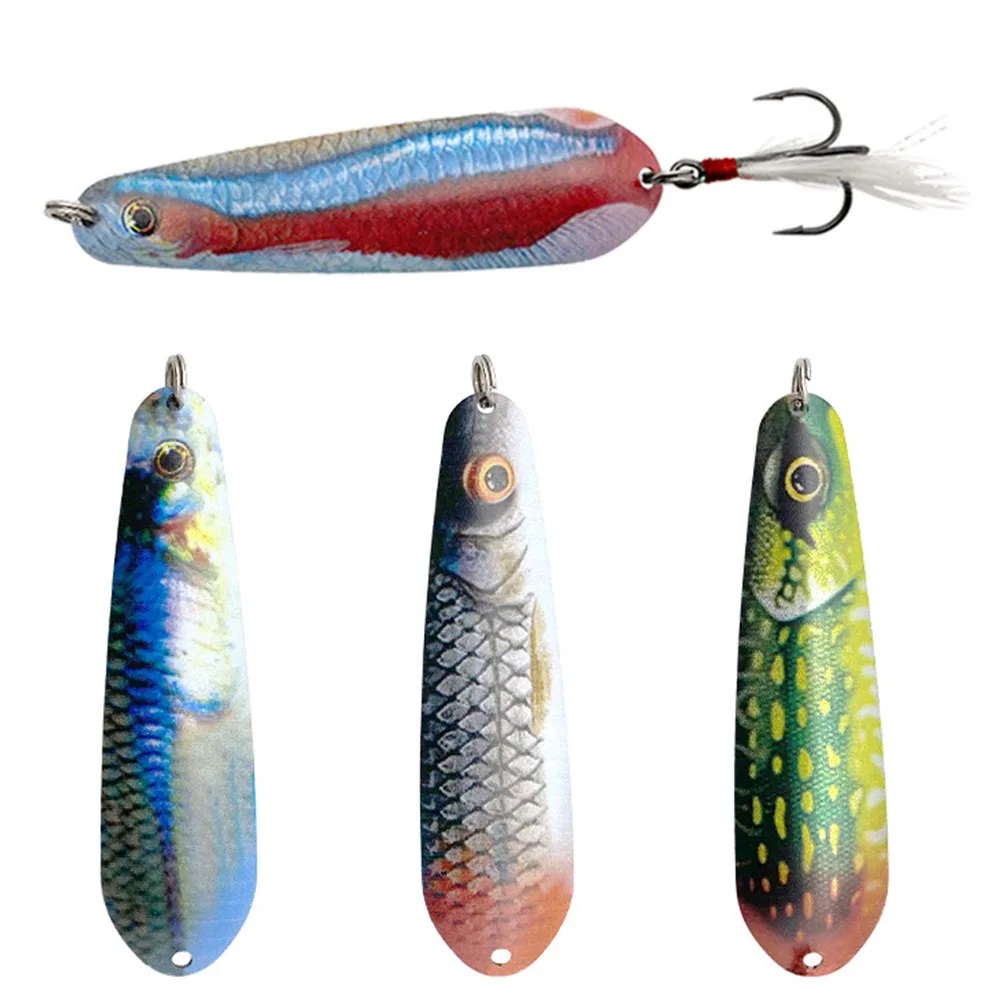 Señuelos de Pesca con cuchara, cebo duro para curricán, pesca de agua dulce y salada, plantilla de Metal, señuelo de atún, anzuelo de Lucio, lubina y salmón, 8,5 cm, 11g