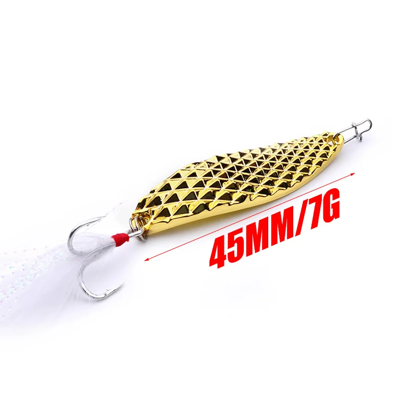 1Pcs Metal Spinner Spoon Fishing Lures 7g 10g 15g Gold Silver Artificial Bait With Feather Treble Hook Trout Pike Bass Tackle