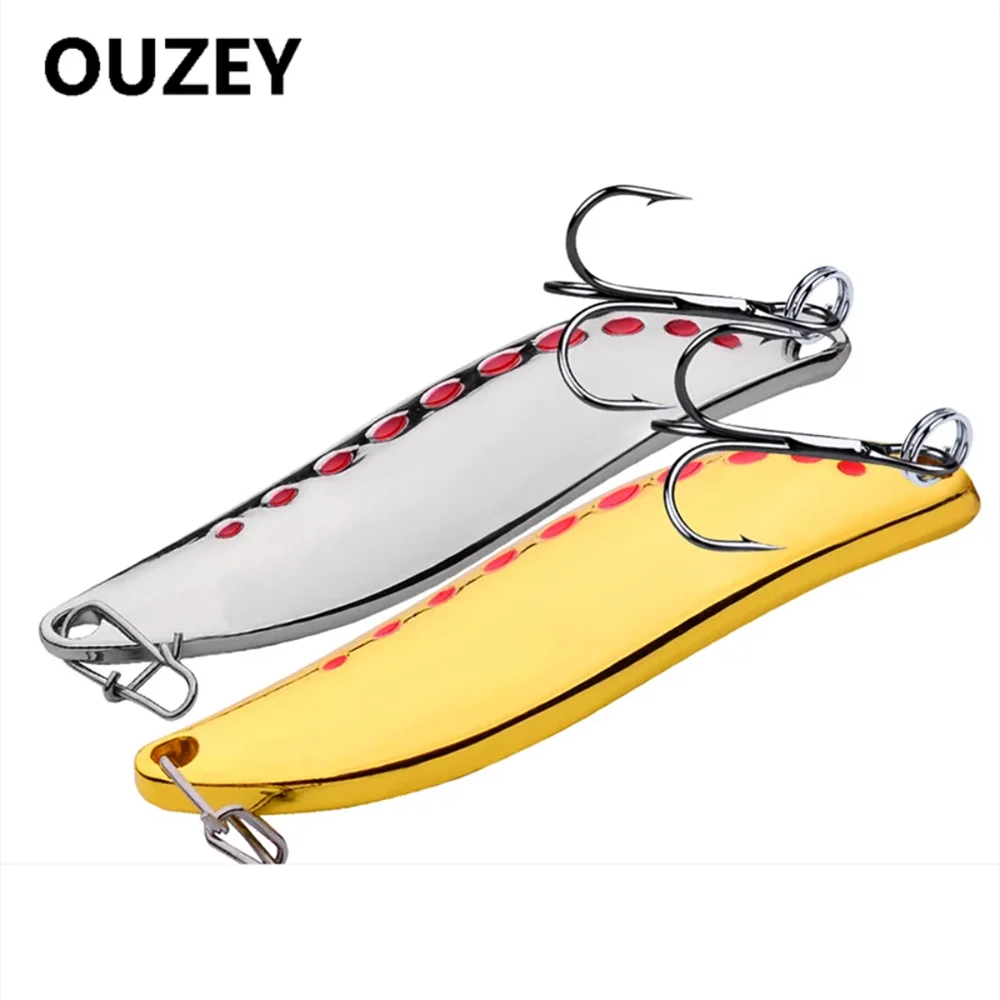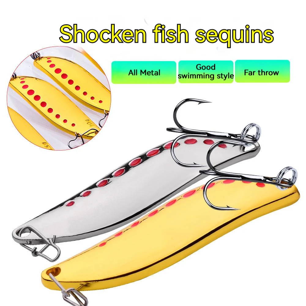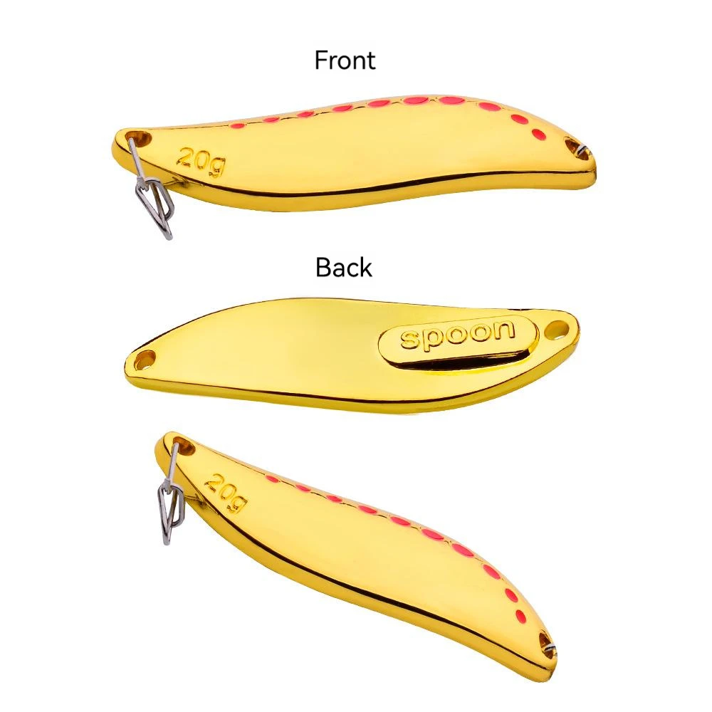 Señuelos de pesca con cuchara giratoria de Metal, cebo Artificial dorado y plateado de 5g-20g con anzuelo triple de plumas, aparejos para trucha, Lucio y lubina